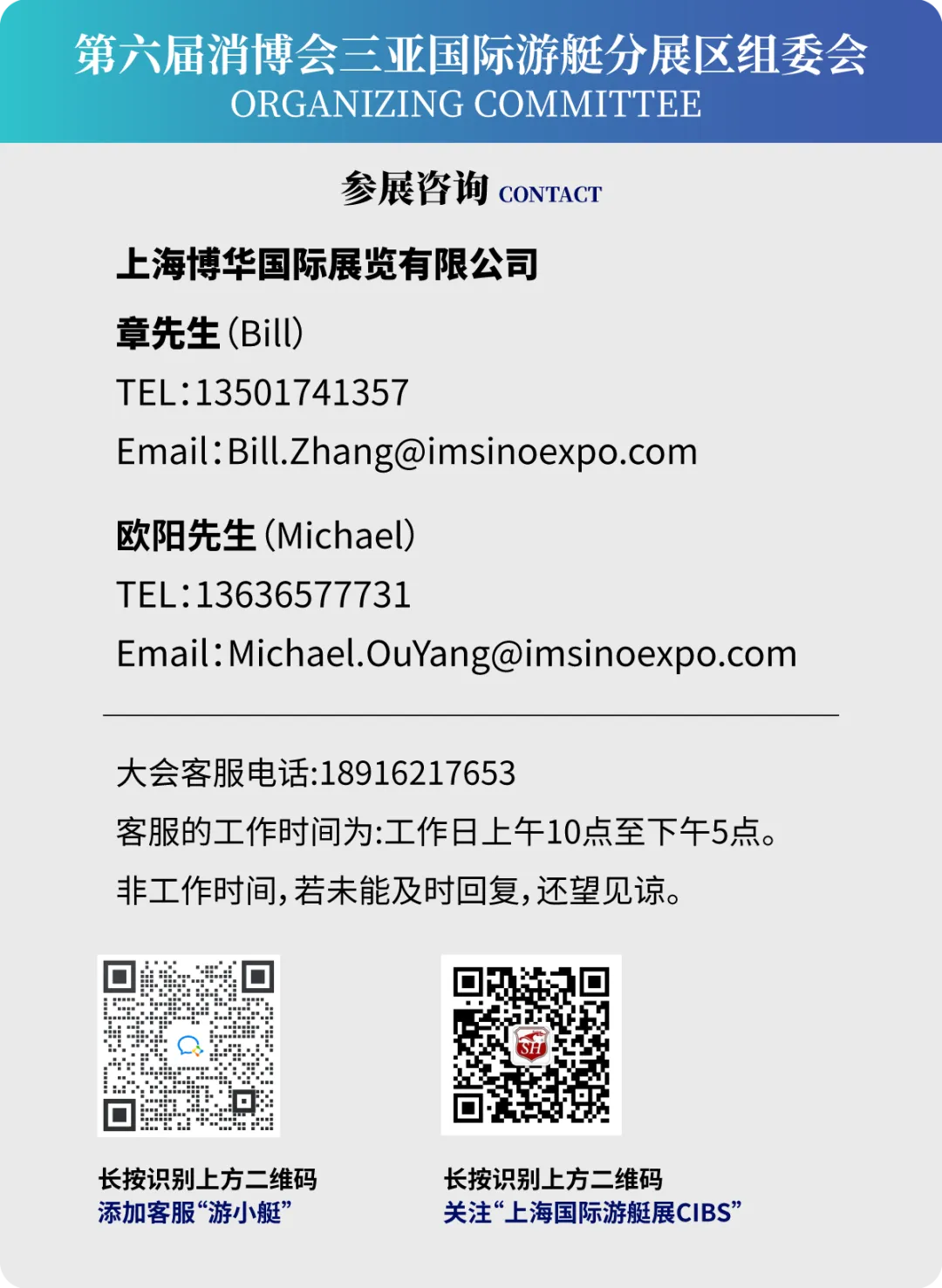 4月15日至18日,由上海博华国际展览有限公司作为合作单位倾情打造的第六届中国国际消费品博览会三亚国际游艇分展区将在三亚国际游艇中心举行。本届分展区以“中国窗口,艇见未来”为主题,以技术出海、国际联动、交易落地三大维度构筑核心竞争力,致力于打造“中国游艇品牌出海窗口”与亚太标志性游艇盛会。