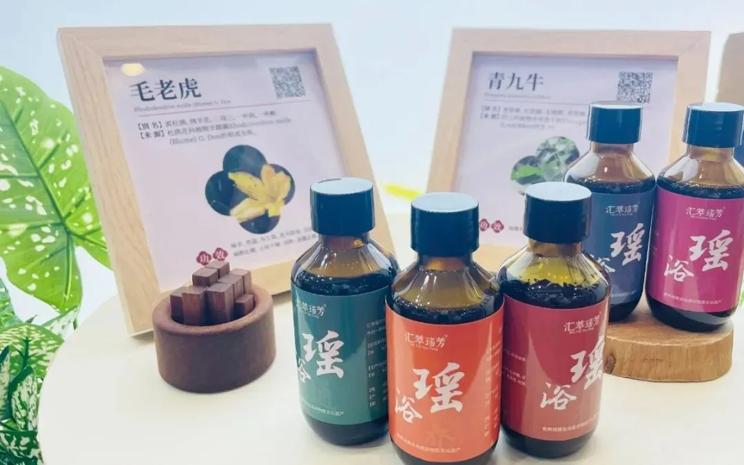 本次展会,宏瑶展区特别陈列金秀大瑶山经典瑶药“五虎九牛十八钻七十二风”科普牌,更有瑶药原材实物、瑶浴原液展示,现场可扫码查看药材“身份信息”的巧思备受关注。