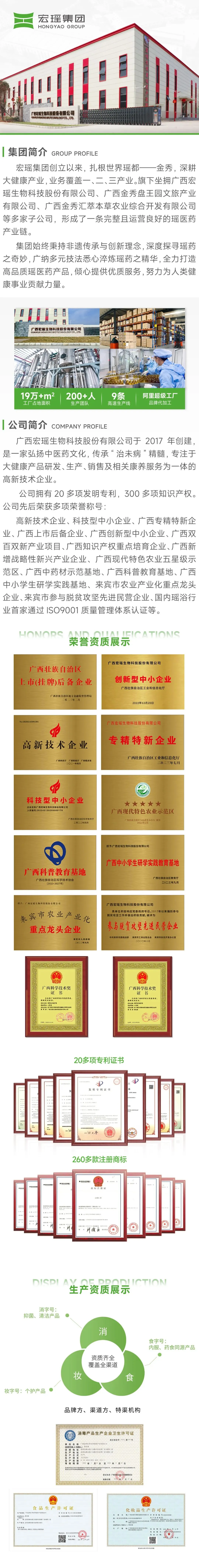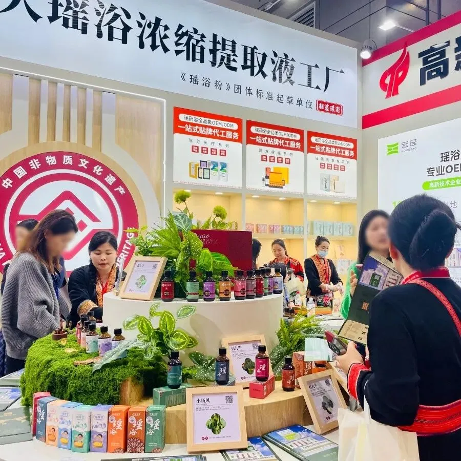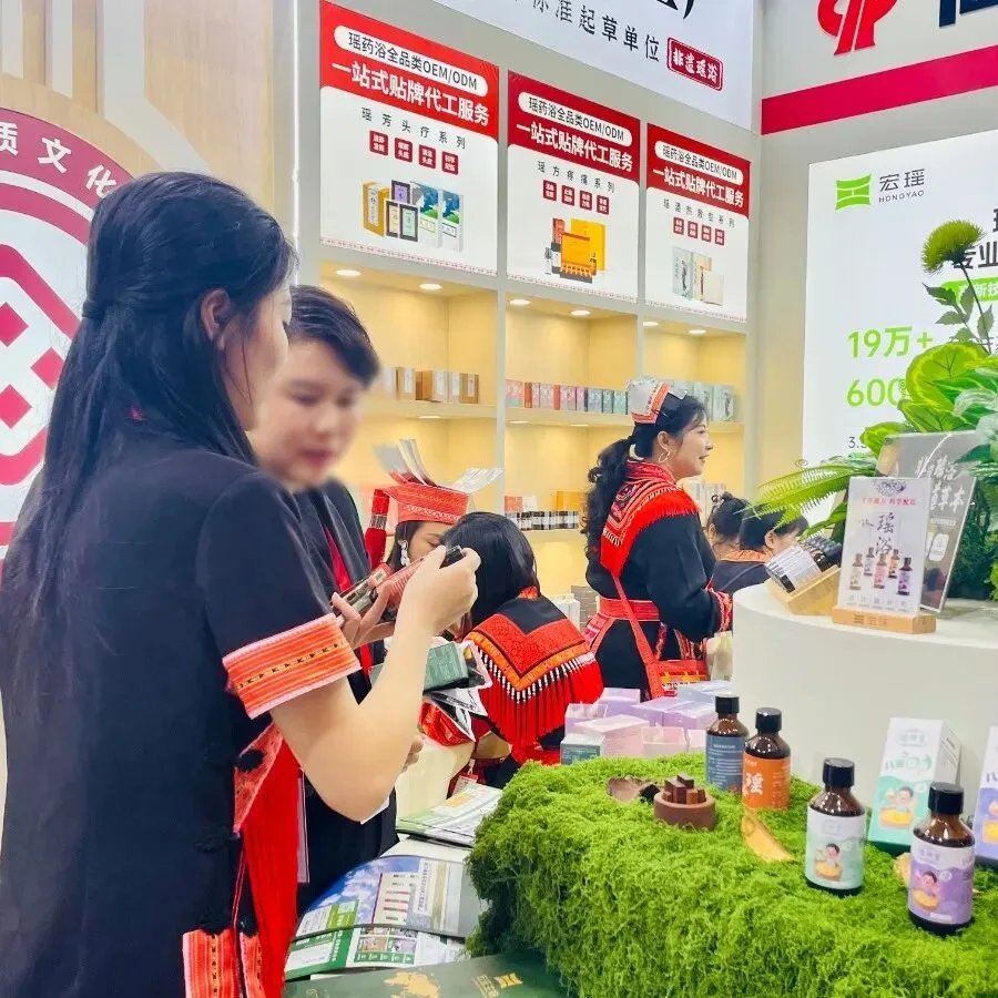 宏瑶集团拥有自治区级“瑶医药非物质文化遗产授权证书”,更是《瑶浴粉》团体标准起草单位,具备消、妆、食字号三大生产资质,推出瑶医药全系品类场场爆满。“效率头牌”瑶浴浓缩液3秒出汤免煮、家庭爆款瑶浴粉剂适配团购渠道、切段式瑶浴保留原生道地药材精髓,轻养生茶饮及瑶方养护系列契合当代温和康养需求,满足多元渠道需求。