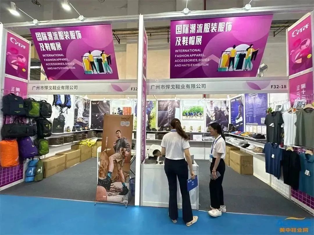 F展区为国际潮流服装服饰及鞋帽展区共336个展位,展品涵盖鞋类箱包等。