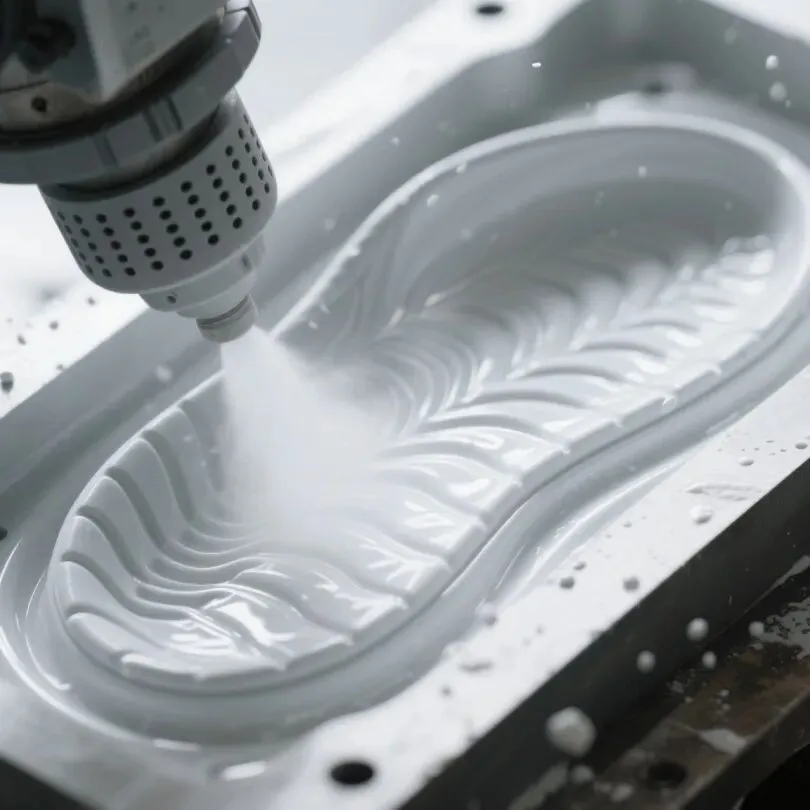 双密度“硬壳软心”:通过精确计量与分区喷涂,同一鞋底骨架处高密度支撑、足底低密度缓震,功能性与舒适性兼得。