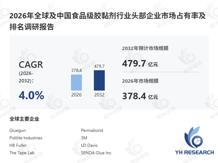 以下内容来自恒州诚思YHResearch出版的《2026年全球及中国食品级胶黏剂行业头部企业市场占有率及排名调研报告》,同时提供英文,日文,韩文等不同语种版本报告。