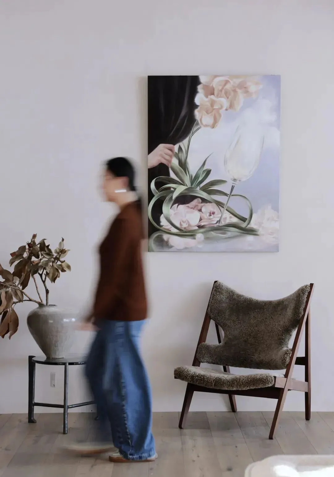 作品涵盖绘画、装置、数字影像。幼时习工笔画,后由设计转向艺术创作。近十年创作实践聚焦于女性主体叙事,将个人生命体验的褶皱一同注入自然意象的构建。