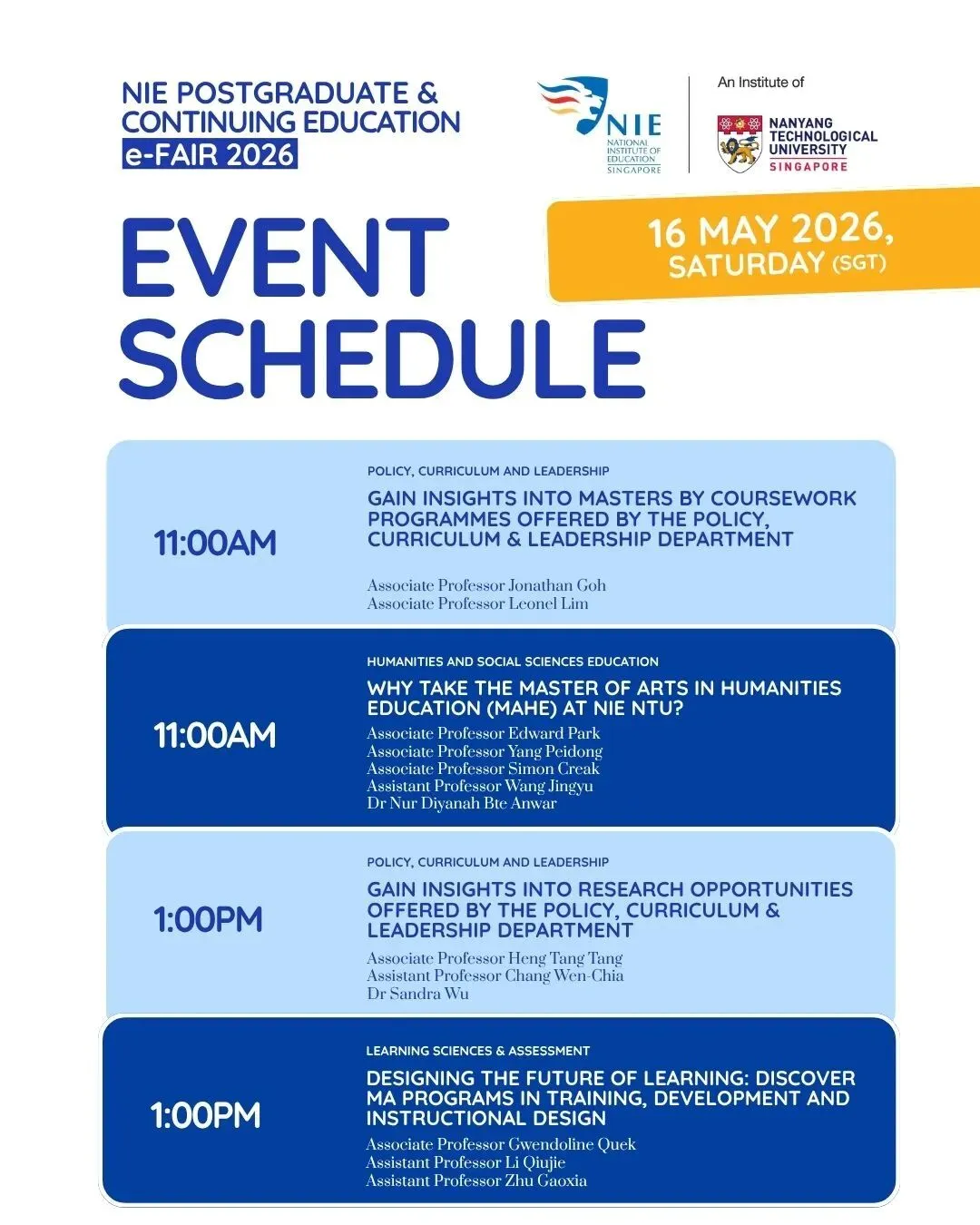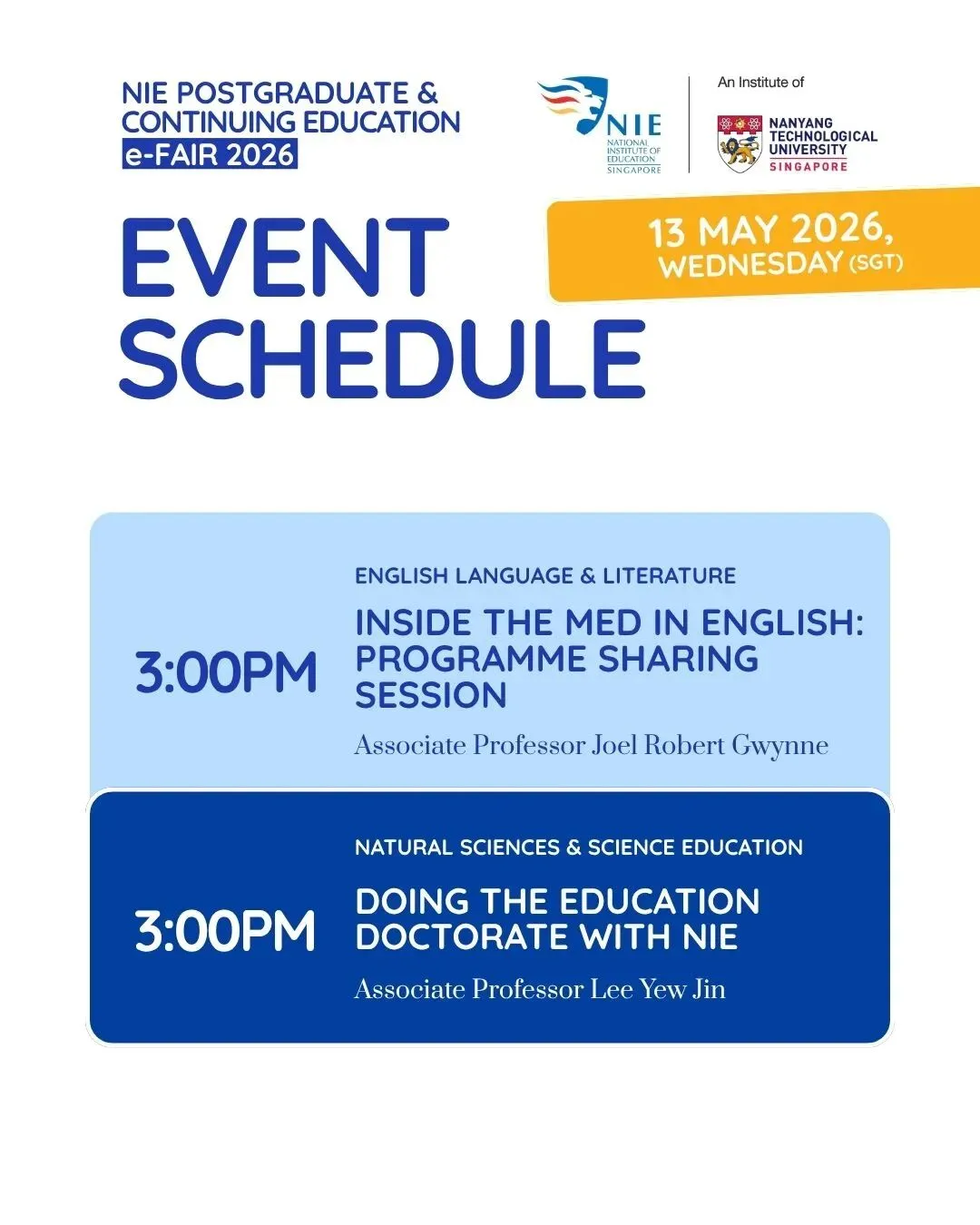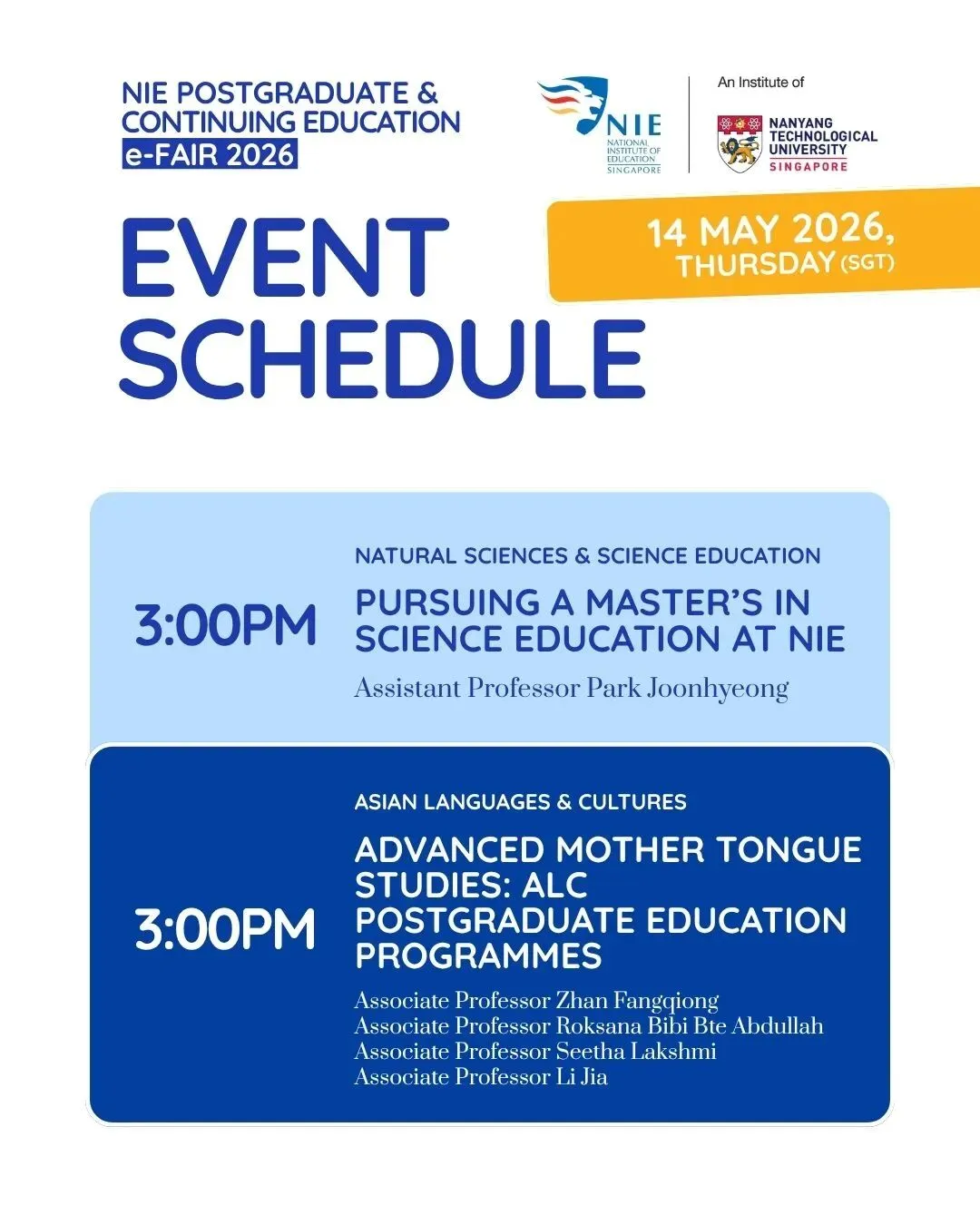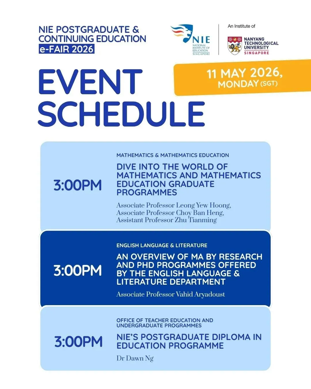 2026年【新加坡国立教育学院(NIE)研究生与继续教育线上展会(PG&CE e-Fair)】现已开放报名!