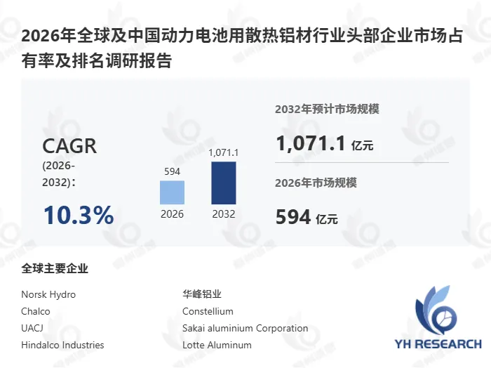 以下内容来自恒州诚思YHResearch出版的《2026年全球及中国动力电池用散热铝材行业头部企业市场占有率及排名调研报告》,同时提供英文,日文,韩文等不同语种版本报告。