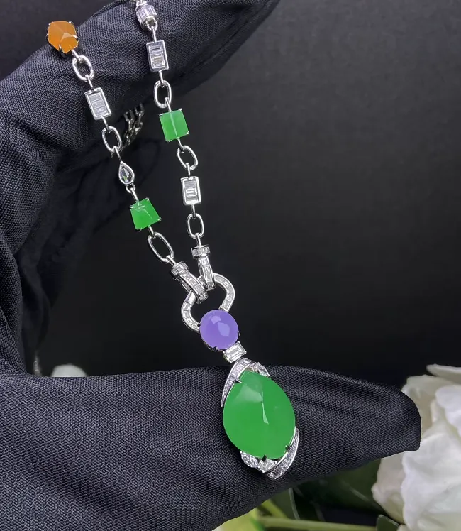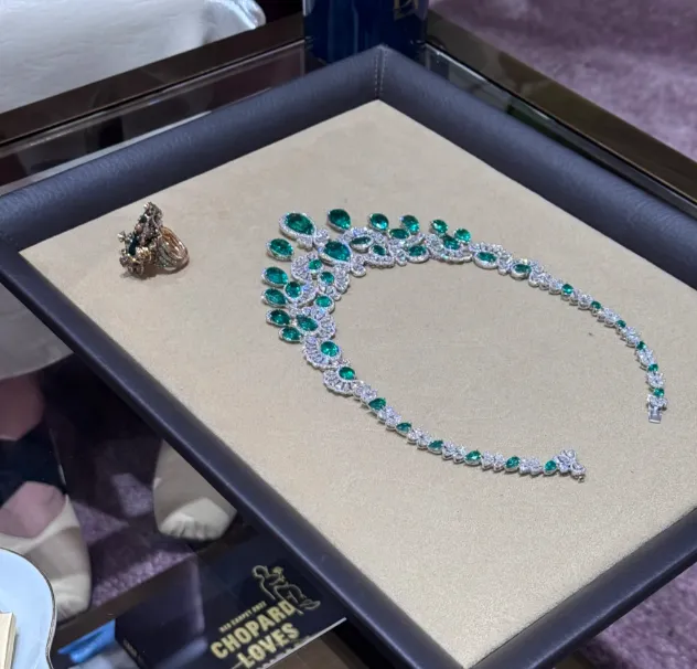 图片是照不出宝石在灯光下的炫彩夺目的,还说我们国人最喜欢的还说翡翠,但是看多了亮闪闪的真的最后一张那个,是真的好看。