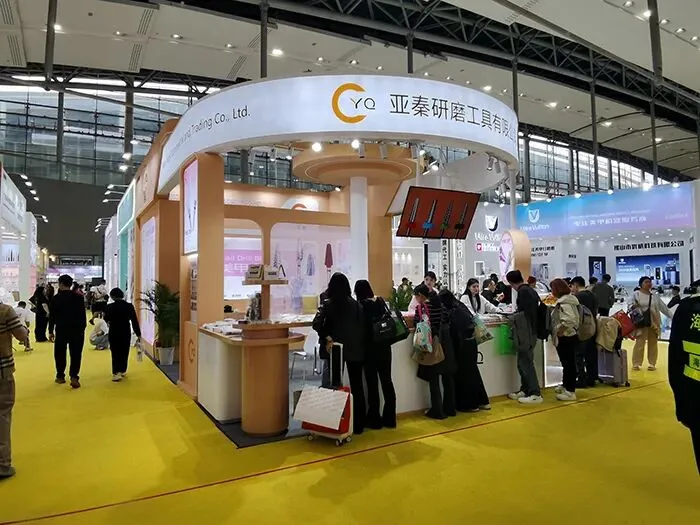 首创展览在设计与搭建这个展台时,显然注重了品牌形象的传达和客户体验的提升。通过简洁大方的设计和细致入微的布置,亚秦研磨工具有限公司的展台在美博会上必将成为一个引人注目的亮点,吸引更多的客户和合作伙伴前来交流合作。