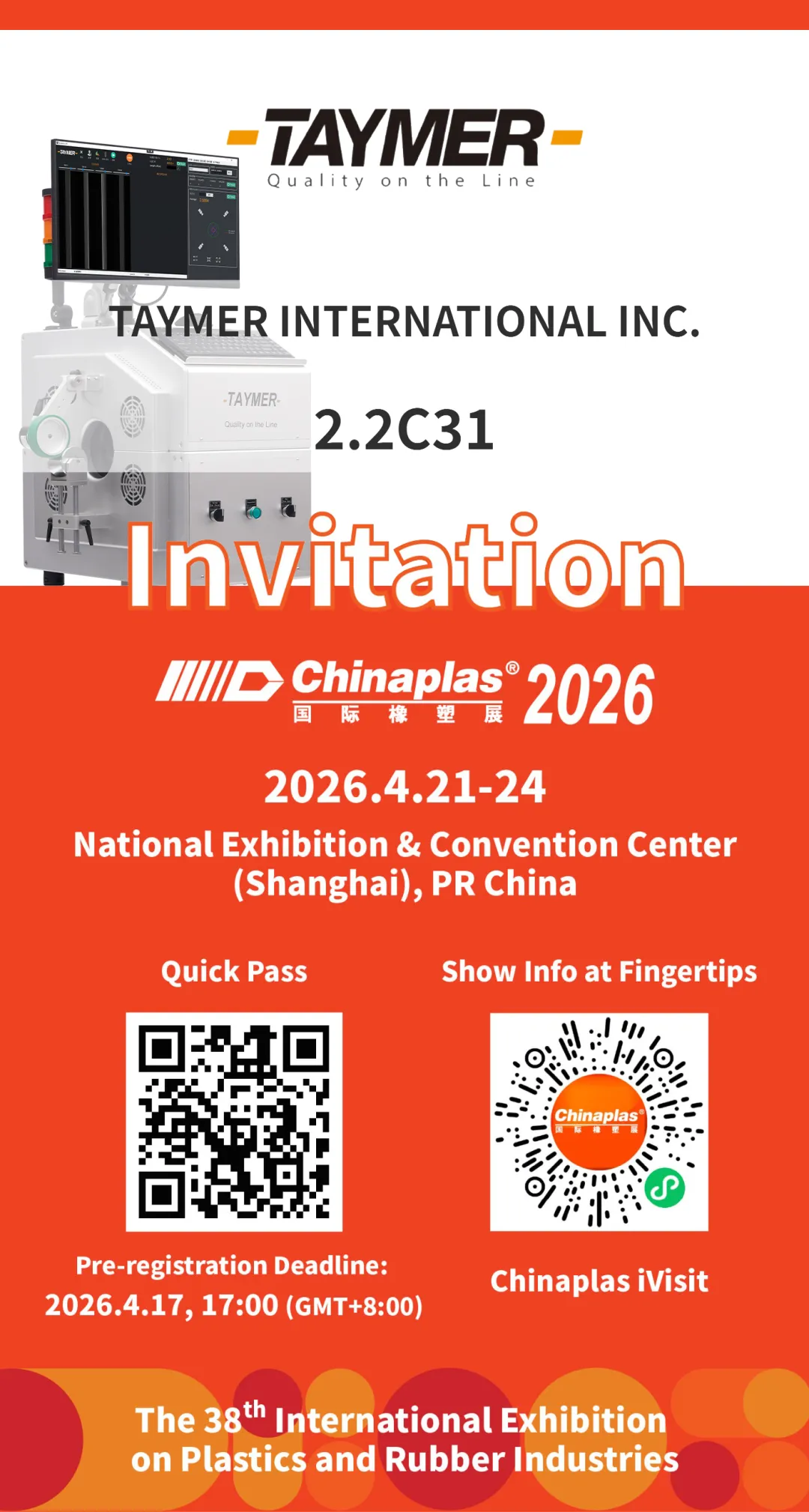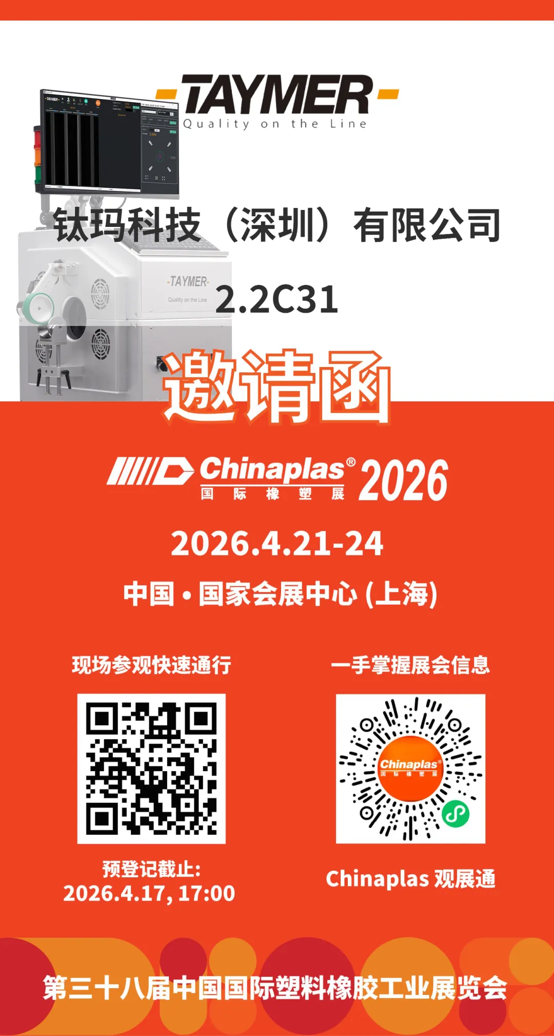 您好!衷心感谢您长期以来对Taymer(钛玛科技)的关注与支持。特此通知,我司将正式参加CHINAPLAS 2026国际橡塑展(第三十八届中国国际塑料橡胶工业展览会),诚邀您莅临我司展台,近距离了解我们的核心产品与服务。