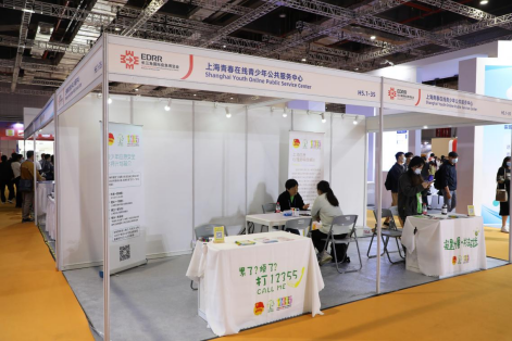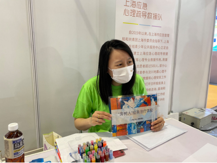 上海12355青少年服务台是团市委下属面向青少年的综合性、一体化、一站式服务平台,长期为广大青少年及家长提供心理健康、法律咨询、家庭教育指导、青少年权益保护等十余类综合性项目服务。展会现场安排上海应急心理疏导救援队专业人员开展了“房树人”绘画治疗体验。