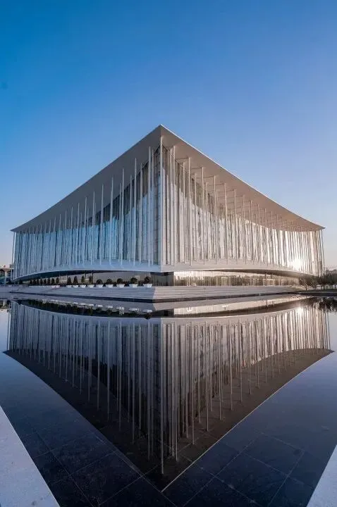 中心对称构图突出建筑与水景的镜像美感