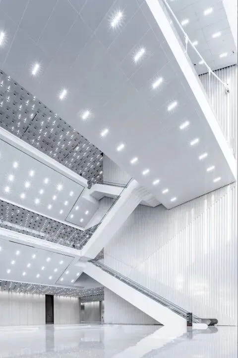 利用地面几何纹理呼应顶部线条,增强画面层次