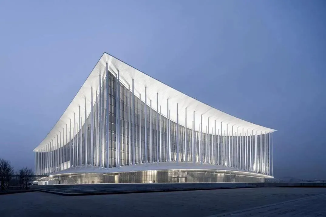 蓝调时刻拍摄,兼顾建筑灯光与天色层次