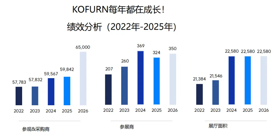 自1981年以来,KOFURN作为韩国家具行业的重要展会已有很长的历史。2026年为第37届展会,海外参与者和买家每年都在增加,并成为重要的参与者。通过分享世界家具潮流和技术,打造成为全球最具影响力的家具展。