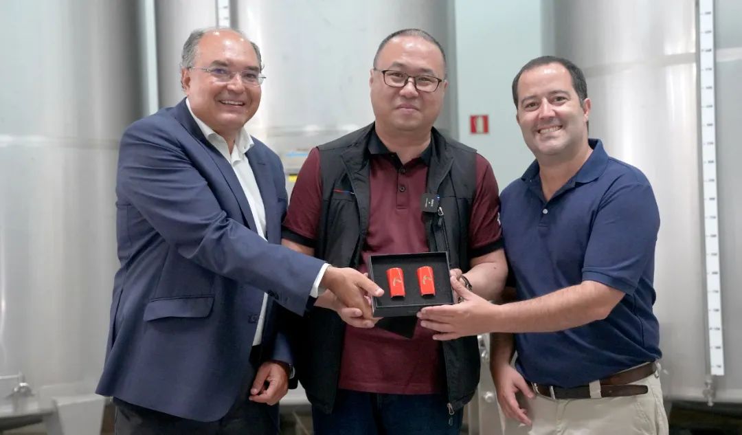 Adega de Palmela 成立于 1955 年,以生产红葡萄酒、白葡萄酒和塞图巴尔麝香葡萄酒为主,独特的包装和优秀的品质使其销售额在葡萄牙常年名列前茅。家族第三代传承人Angelo Machado表示,自己也是“酿酒人”,非常荣幸通过王为先生学习与了解中国酱酒文化。通过这次交流,他决定在近期携公司高管开展“中国酱酒之旅”回访,进一步了解中国白酒文化,并与酣客酱酒开展产业合作讨论。