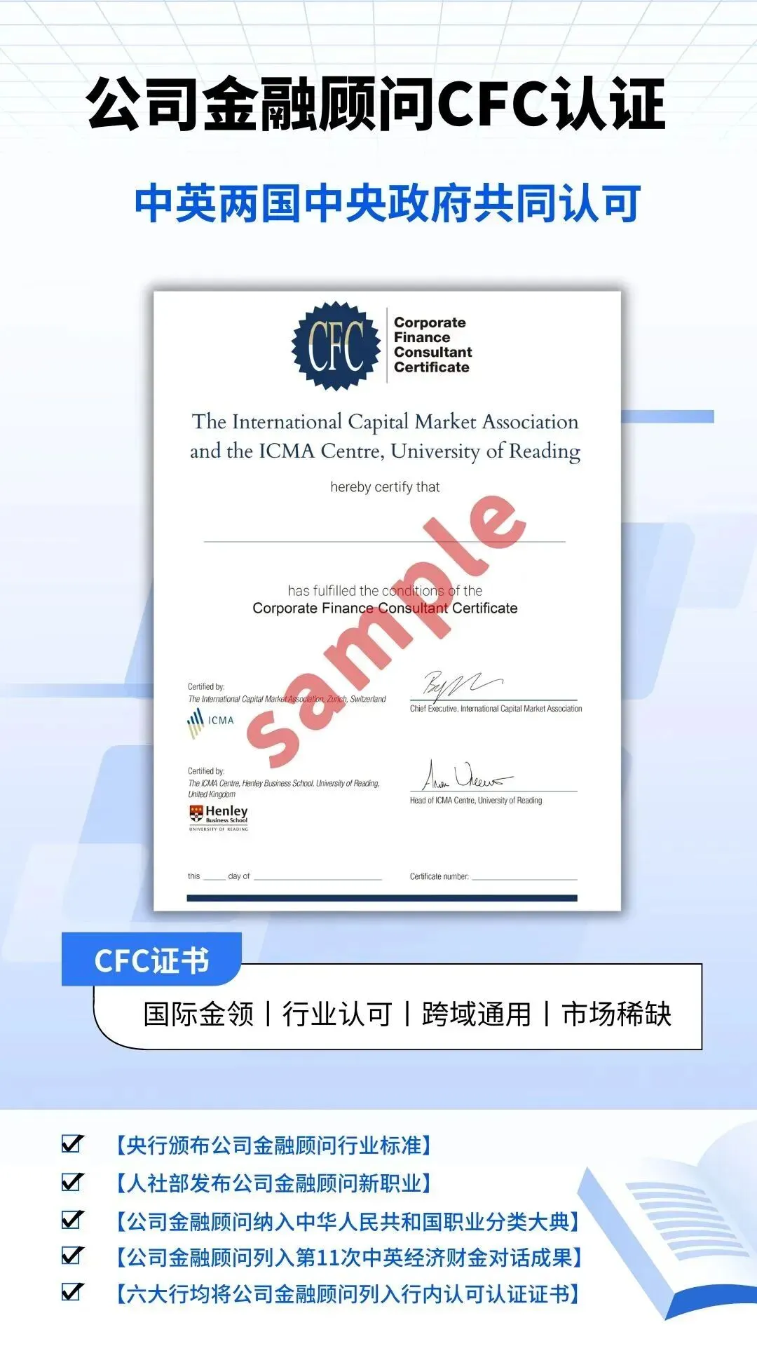 该体系不仅率先实现与国际先进金融体系的深度接轨,更是严格依据《公司金融顾问》金融行业标准研发的新职业认证体系。作为经国家认证的金融行业新职业,公司金融顾问(CFC)聚焦于帮助金融机构与企业建立全球化的公司金融视角,系统掌握境内外企业投融资管理体系及金融市场运行逻辑。其核心目标在于培养兼具国际市场规则洞察力与公司金融业务特性把控力的综合金融服务人才。