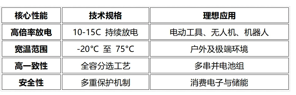 数据支撑: 一颗标称2000mAh的电芯,可稳定输出20A至30A的电流,轻松满足工业级工具和机器人的峰值功率需求。