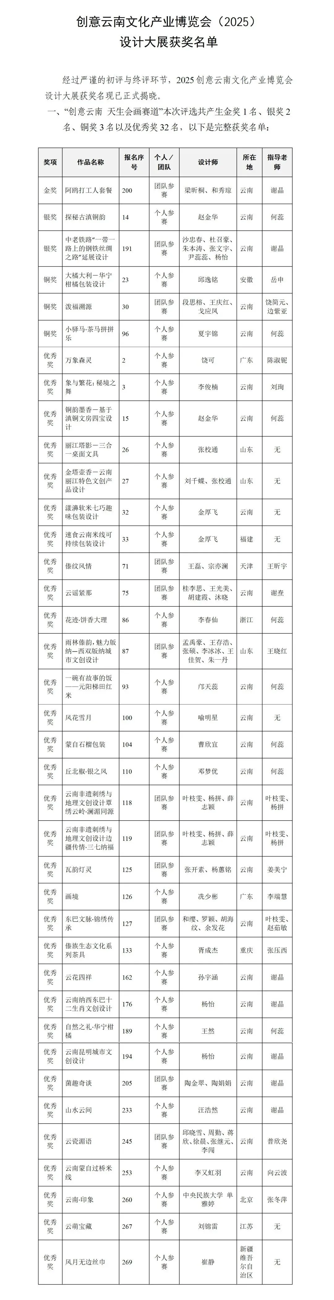 创意云南文化产业博览会(2025)设计大展获奖名单公布