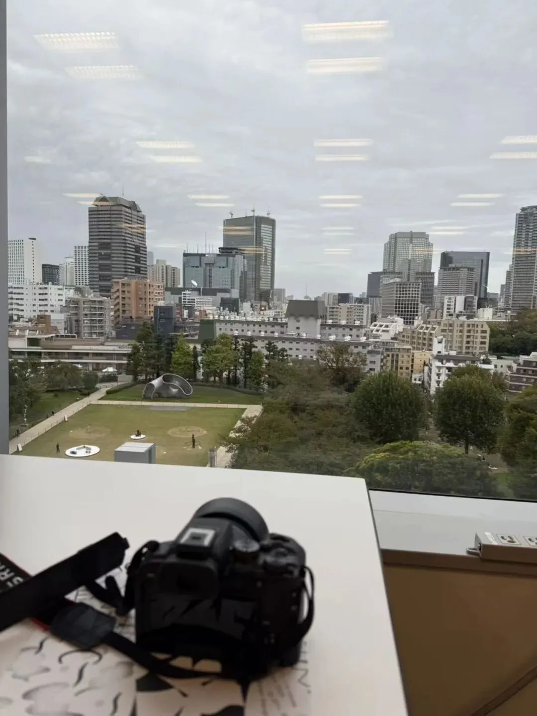 下午三点半到东京塔。东京塔附近没有开阔的广场,在楼宇之间。穿二次元公主裙的女孩在拍照,摄影师穿着黑色衣服。