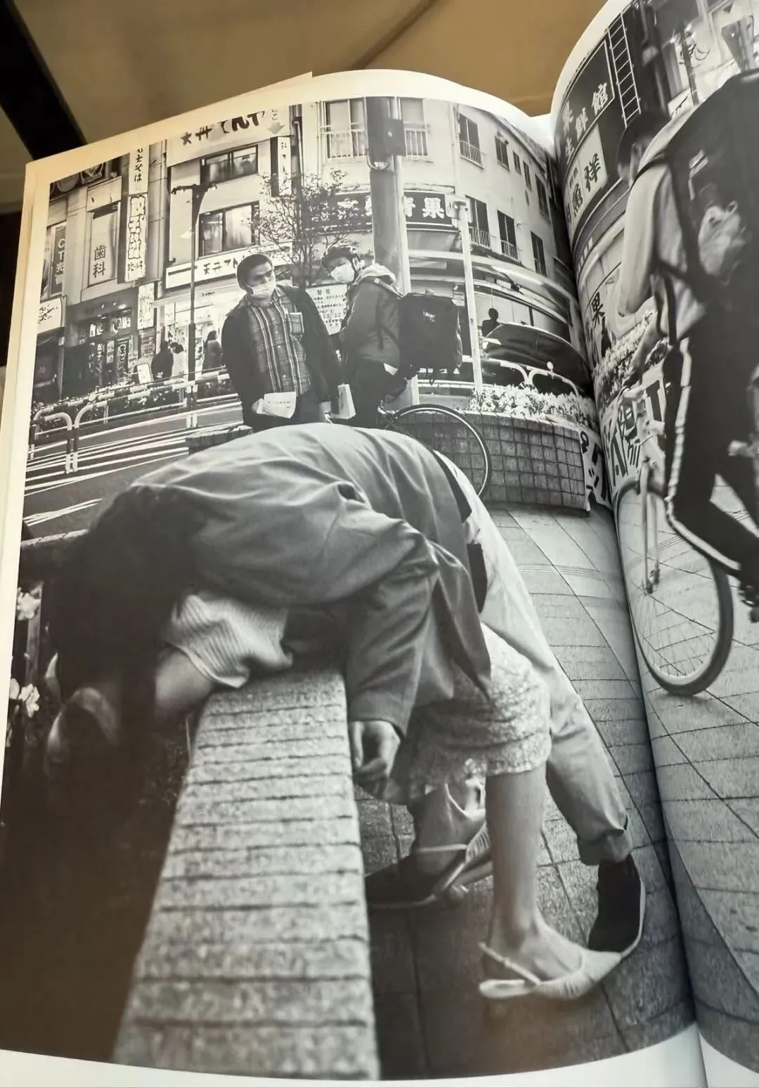 乔眉来到阅览区,她不懂日文,她抽出一本日本摄影师的街拍。乔眉坐在窗前,一页页翻阅,从中看见真实的日本:流浪汉、街头亲热的恋人、身穿防护服的工作人员。