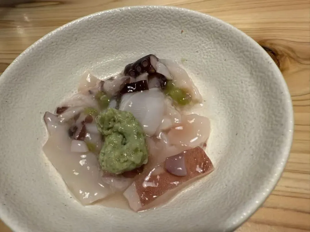 回到酒店,天色已晚,他说就在酒店负一楼的鸟贵族吃吧!三人沿着楼梯到鸟贵族,一处大众饮食店。三人坐下,点了几样菜,芥末章鱼脚用盐腌过,芥末的辣直冲天灵盖。邻座有十几人,有男有女,还有个小女孩。突然有年轻女孩大声说话,接着是肆无忌惮地的怪异的不知笑还是哭的尖叫、嚎叫,丝毫不顾忌公共场合,令人毛骨悚然。