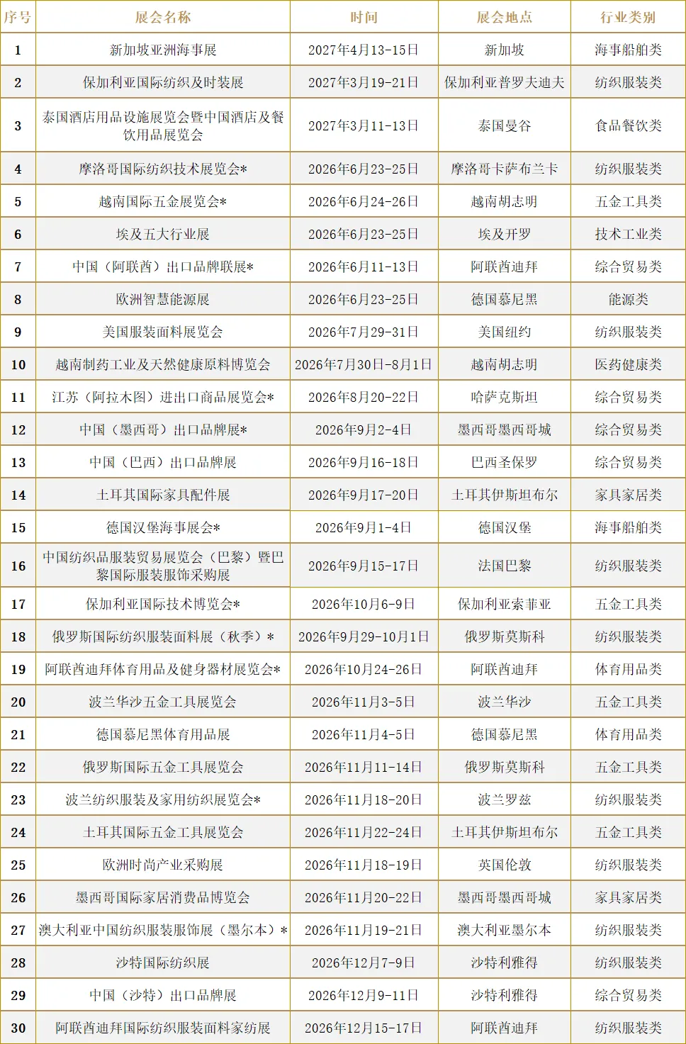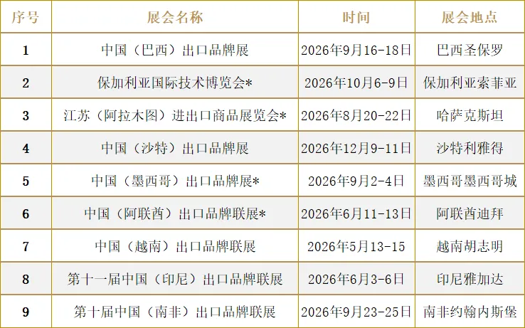 为更好助力南通本土企业开拓国内外市场、抢抓跨境贸易新机遇,南通贸促国际会展有限公司精心梳理重点展会计划,覆盖纺织服装展、家居用品展、体育用品展、五金工具展、户外园艺展、船舶海工展、工业展、综合展、跨境电商展等多个优势产业领域,为企业搭建高效对接、品牌出海、订单拓展的优质平台,助力企业精准布局全球商机。