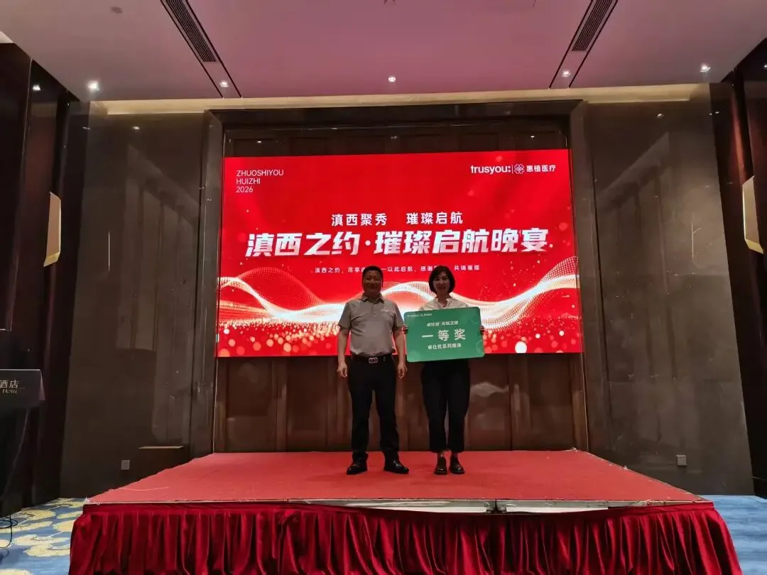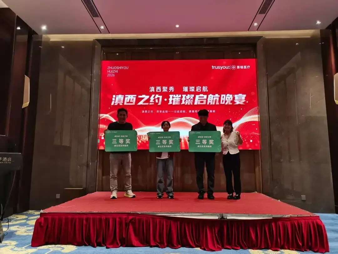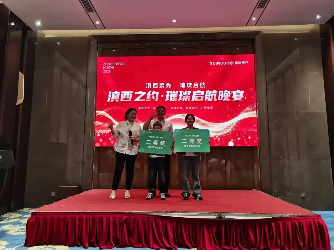 惠植医疗携卓仕优的展位依旧火热非凡。 从上午开馆到下午闭馆,前来咨询、洽谈的客户络绎不绝,5号馆H04几乎成了一个小中心。我们的团队伙伴们始终精神饱满,为每一位到访的朋友详细介绍产品、解答疑问,不少客户当场表达了深入合作的意向。感谢大家的信任与关注,你们的每一次驻足,都是对我们最大的鼓励。如果说白天的热情属于展馆,那么晚上的精彩则属于“卓仕优·无忧之夜”——结束一天忙碌后,我们邀请众多新老朋友共赴晚宴,现场宾朋满座、欢声笑语不断,大家卸下疲惫、兴致高昂地交流着展会心得与行业见解。晚宴在惠植医疗董事长邹飞德先生的致辞中正式拉开帷幕,邹总向各位来宾表达了诚挚感谢并分享了惠植医疗与卓仕优携手前行的初心与愿景,随后惠植医疗总经理孙青松先生也上台致辞,向长期支持我们的合作伙伴致以敬意并表达了与大家共创未来的坚定信心;更让我们感动的是,几位一路同行的合作伙伴代表也受邀上台发言,他们分享了与惠植医疗、卓仕优合作的真实感受与收获,朴实而真挚的话语赢得了全场阵阵掌声——客户的信任,是我们前行的最大动力。致辞与分享之后,晚宴用餐正式开始。 美酒佳肴相伴,席间谈笑风生,气氛温馨而热烈。而最让人期待的环节——抽奖仪式,更是将整晚的欢乐推向高潮。三等奖三名、二等奖两名、一等奖一名,共计六位幸运嘉宾收获了我们精心准备的大奖。每一次开奖都引发阵阵欢呼,中奖者喜笑颜开,现场掌声与祝贺声此起彼伏。这一夜,大家尽兴而归,满载的不只是奖品,更是彼此的情谊与对未来的美好期待。今天是展会第三天,成都·中国西部国际博览城依然人潮涌动,5号馆H04的热度只增不减。 惠植医疗与卓仕优全体伙伴已就位,带着同样的热忱与专业,等待每一位新老朋友的到来。无论您是来了解产品、洽谈合作,还是单纯过来聊聊天,我们都真诚欢迎。
