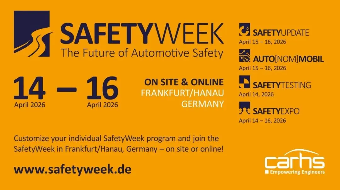 With 23 years of deep expertise in the automotive safety sector—spanning everything from regulations and standards to technological implementation, and from testing and simulation to autonomous driving—SafetyWeek has long been regarded as the “must-attend annual event” for professionals in the global automotive safety industry. From April 14–16, 2026, this premier event will return to Frankfurt, Germany, for its 24th edition. The full program has been officially released, featuring over 60 leading industry experts, three core thematic conferences, a one-stop safety technology exhibition, exclusive industry networking opportunities, and cutting-edge technical workshops. All the key opportunities in the automotive safety sector are right here!