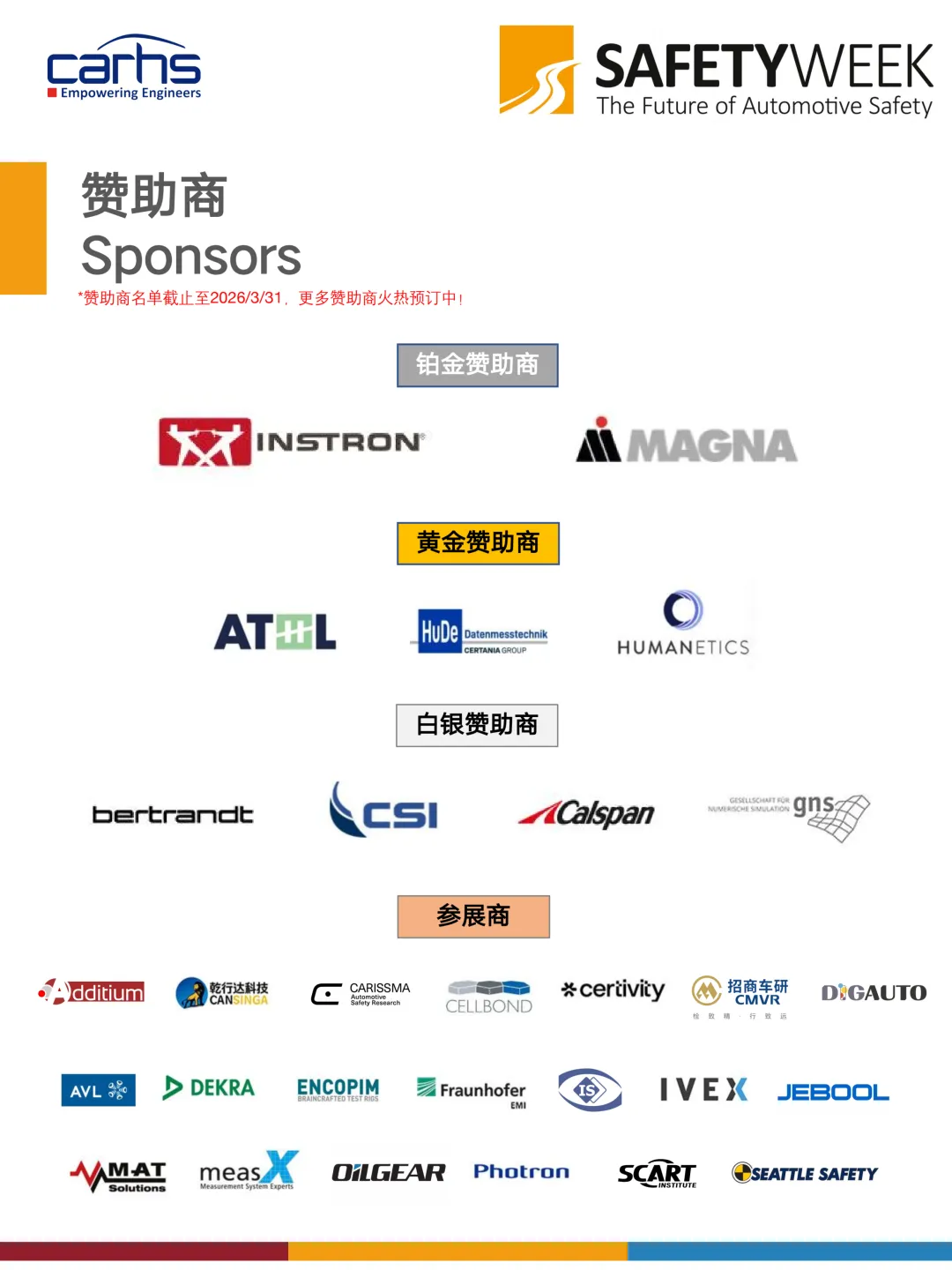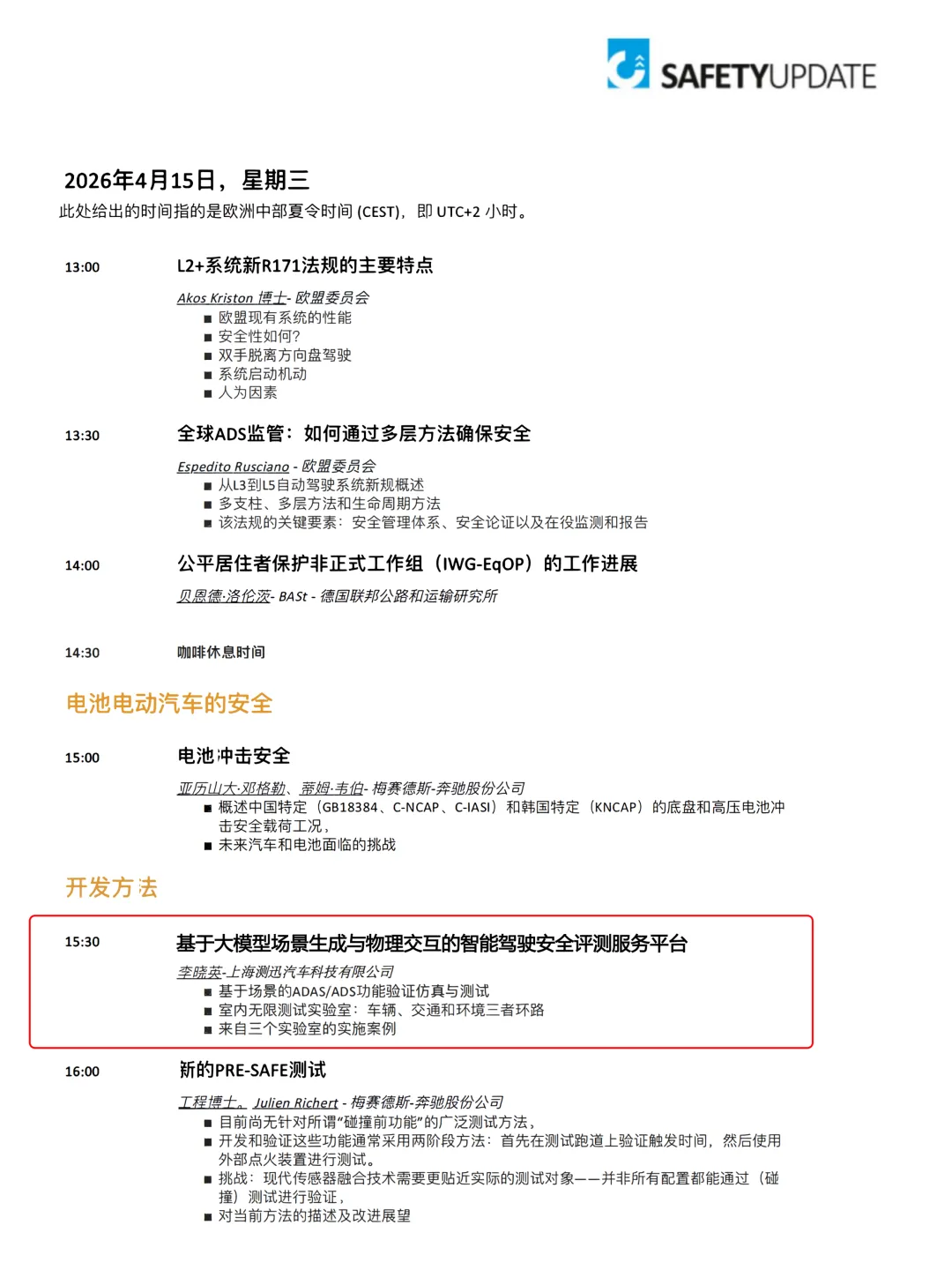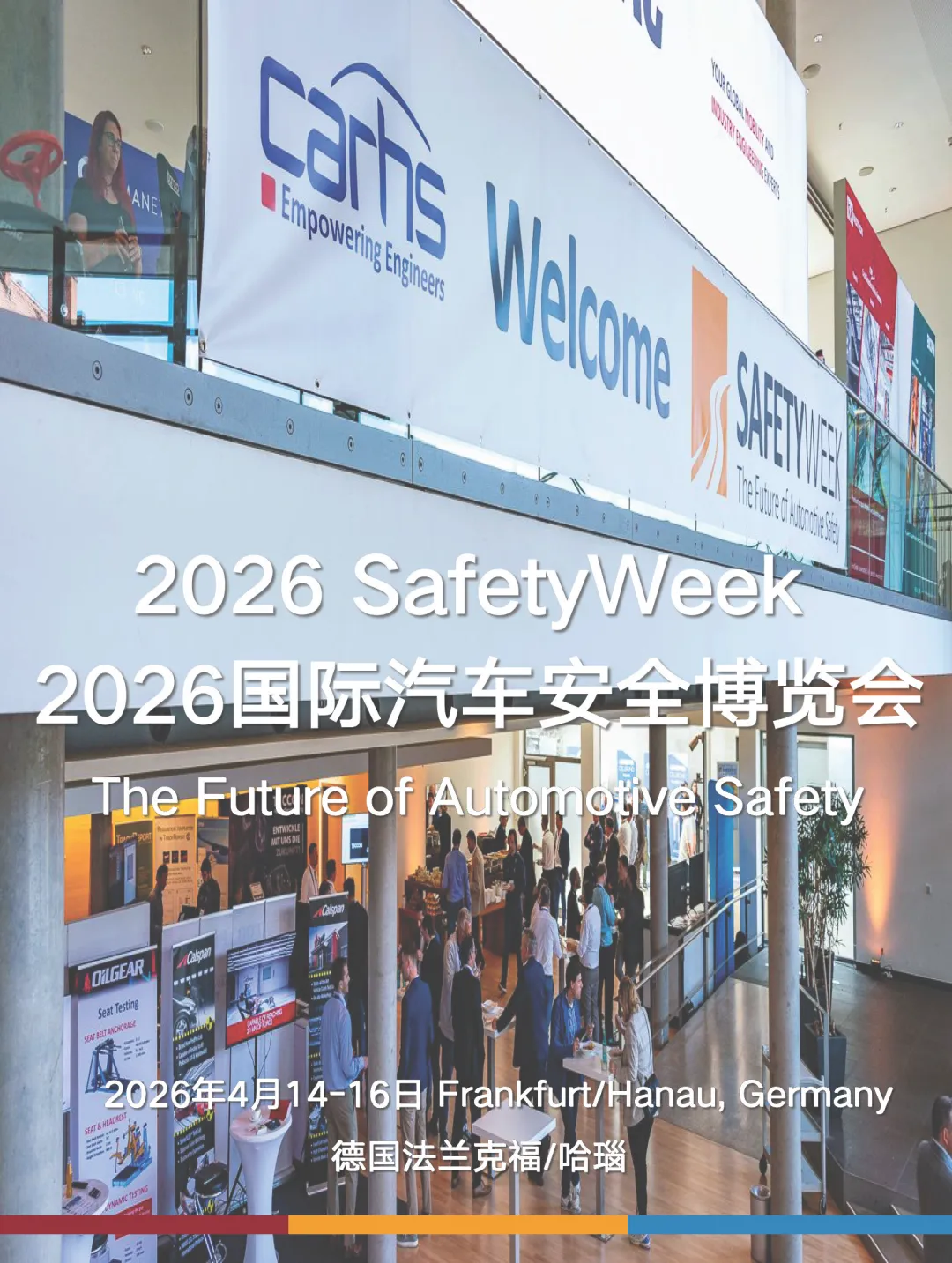 深耕汽车安全领域23载,从法规标准到技术落地,从测试仿真到自动驾驶,德国国际汽车安全博览会(SafetyWeek)早已成为全球汽车安全人心中的「年度必赴之约」。2026年4月14-16日,这场盛会将第24次登陆德国法兰克福,最新全议程正式发布,60+行业顶尖专家、三大核心专题会议、一站式安全技术展,还有专属行业社交与前沿技术研讨,所有汽车安全领域的核心机遇,都在这里!