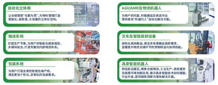 展会采用 “产品 + 场景” 的展示模式,让抽象的技术与设备变得可感可知。在自动化仓储展区,AS/RS 立体仓库系统将展示如何实现高密度、大容量物料管理;AGV/AMR 专区,各类移动机器人将现场演示托盘搬运、货箱拣选、无人配送等自动化流程;包装系统展区,柔性智能包装生产线将直观呈现个性化定制包装解决方案。
