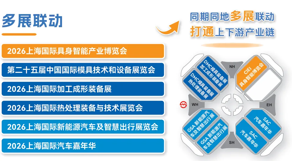 当前,具身智能技术加速从实验室走向市场,其产业化的关键标志日益清晰:一是企业频获大额订单,国产人形机器人已实现规模化量产下线:二是资本市场亦高度活跃,仅在2025年1至10月,该领域融资总额就超过500亿元人民币。从国家战略高度看产业正迎来历史性机遇。“十五五”规划建议明确提出,要前瞻布局未来产业,推动具身智能等成为新的经济塔长点。国家发改委亦在“十五五”规划编制框架下,系统谋划产业发展,以强化政策牵引。这标志着具身智能已成为国家层面重点培育的战略性新兴力量,发展前景广阔。展望“十五五”时期,产业将实现规模级的跨越。权威报告显示,我国具身智能产业正以超50%的年增速跨越式发展。国务院发展研究中心研判,其市场在2035年有望突破万亿元规模。这不仅将为交通物流、工业制造等千行百业带来深刻变革,更是推动经济社会高质量发展的关键引擎和新质生产力的核心驱动力之一。上海国际具身智能产业博览会(简称CIE12026)--聚焦“具身智能”全产业链的前沿融合型国际展会平台,CIEI2026旨在构建一个超越传统展览的价值新枢纽。将以“技术革新”为支点,“生态融合”为脉络,不仅汇聚全球前沿科技与顶尖企业,更深耕于商务合作、理念共创与未来洞察的核心场景。