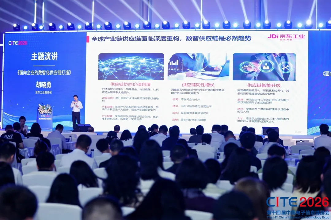在4月9日于深圳开幕的中国电子信息博览会(CITE2026)主论坛上,京东工业以“智造先锋——数智化供应链共建”为主题,展示了工业AI大模型JoyIndustrial的创新应用,以及“太璞”数实一体化供应链解决方案,为电子产业应对复杂供应链挑战提供了可落地的降本增效路径。