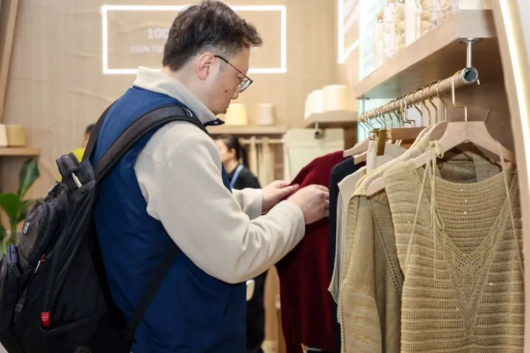 全球采购商对中国纺织绿色创新成果给予高度认可,来自意大利托斯卡纳的采购商Matteo Rossi聚焦循环再生和生物基产品,此次展会他已锁定至少5家有合作意向的中国供应商,涵盖化学法再生涤纶、聚乳酸纤维等多个品类。他表示,中国循环再生纤维的产能与技术均达到国际先进水准,生物基纤维品类丰富、创新成果多元,中国已成为全球高端环保纺织材料采购的首选目的地,本次展会达成的合作意向将快速转化为实际采购订单。