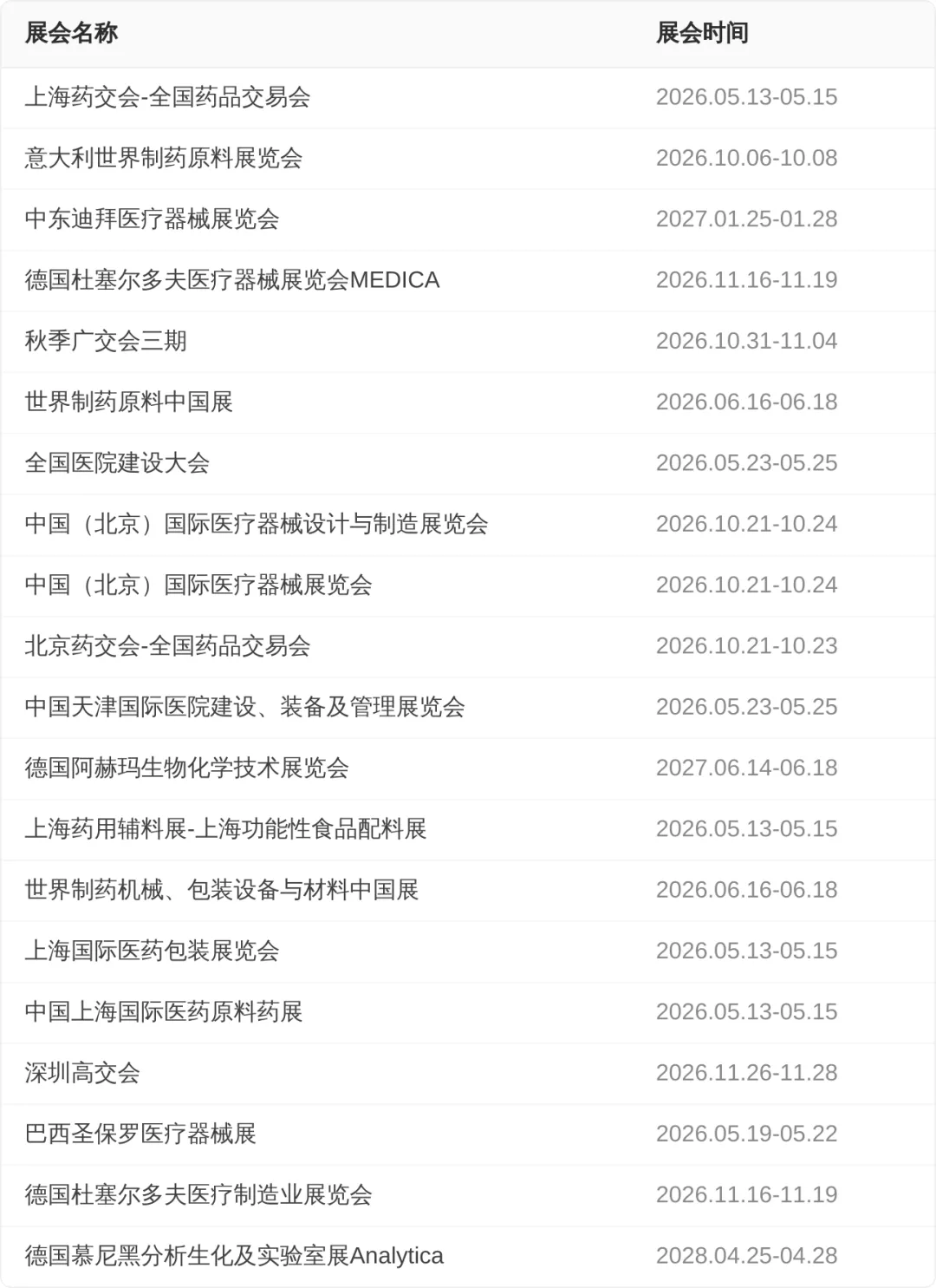 【制药原料、机械展会排期】