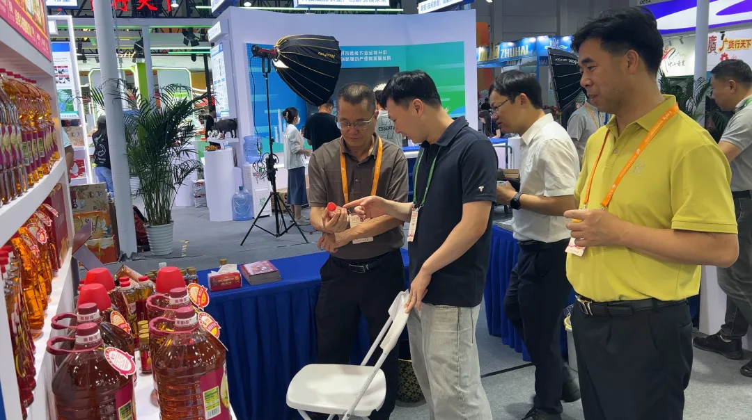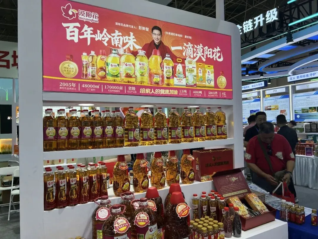 在阳江馆的核心区域,漠阳花展位吸引了不少采购商、经销商和市民。工作人员热情介绍产品的育种特色、原料来源、加工工艺和营养特点,很多人闻过后对漠阳花花生油的风味表示认可。