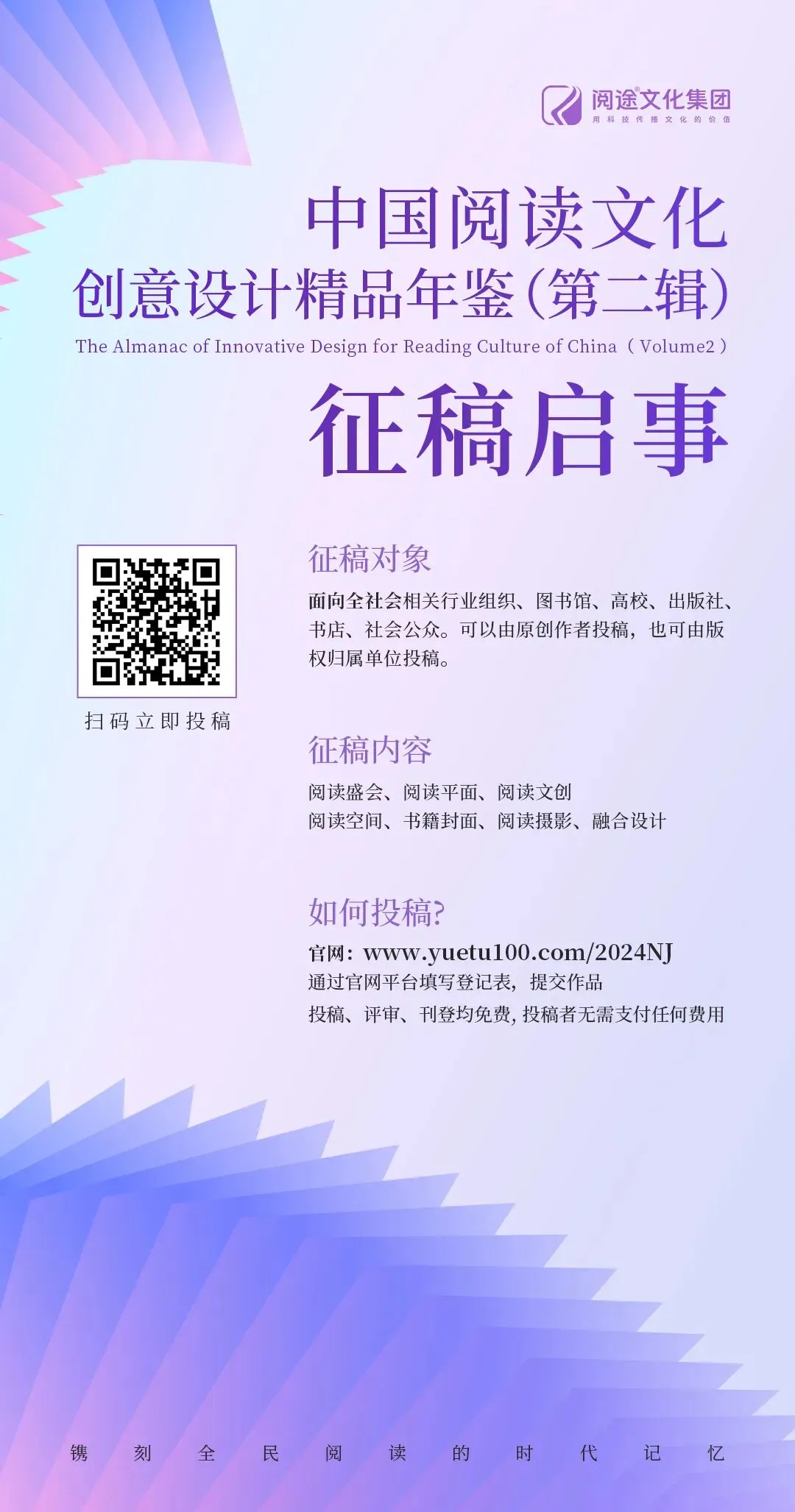 为响应全民阅读的国家战略,传承阅读文化,镌刻全民阅读的时代记忆,由北京大学出版研究院指导,阅途文化集团策划的《中国阅读文化创意设计精品年鉴(第一辑)》于2024年4月在岭南美术出版社出版,并在第三届全民阅读大会首发亮相。