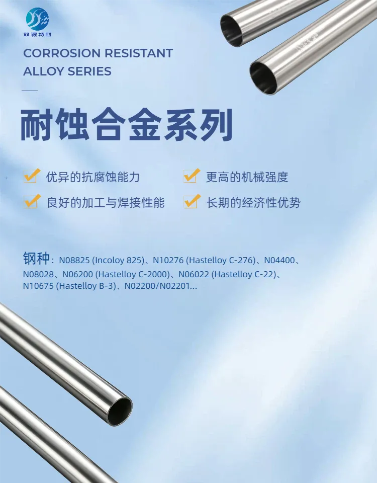 浙江双银特材科技有限公司成立于2020年03月,是既生产各种牌号镍基合金无缝管又生产不锈钢有缝钢管的企业,年设计生产能力无缝钢管3000吨,有缝焊管5000吨,无缝钢管全线采用具有国内领先的以冷轧为主、轧-拔联合工艺组织生产。公司自主品牌“双银”,主导产品为:高温合金镍基合金管、耐蚀合金镍基合金管、超纯半导体管BA以及EP级钢管。产品应用范围涉及石油化工、半导体制备、仪器仪表、军工、核电等行业,同时还为国防、航天等尖端科技领域所配套。