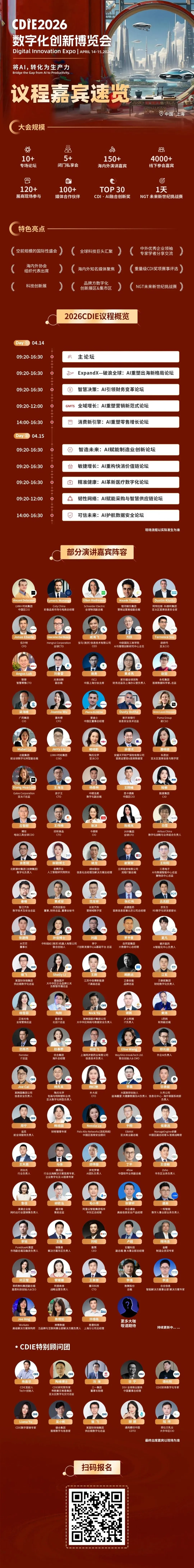 2026 年 4 月 14-15 日,『第十二届 CDIE 数字化创新博览会暨 GDIE 全球数字化创新博览会中国站』将在上海张江科学会堂盛大启幕。本届大会以 “将 AI,转化为生产力” 为核心主题,打造全球技术与商业融合的高能量峰会,作为 GDIE 全球六大枢纽峰会之一的中国旗舰站,CDIE2026 重磅集结行业力量,共探数字化转型新路径。