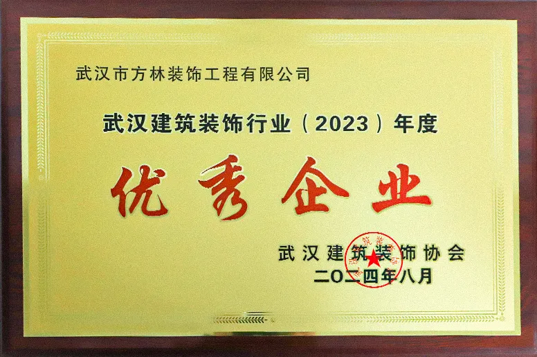 ▲武汉方林装饰喜获2023年度“优秀企业”称号