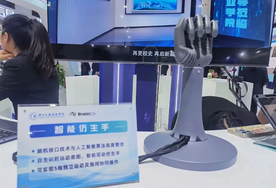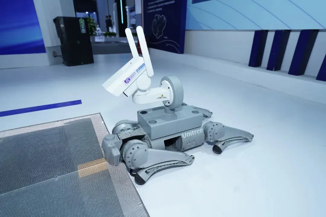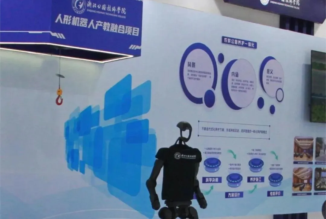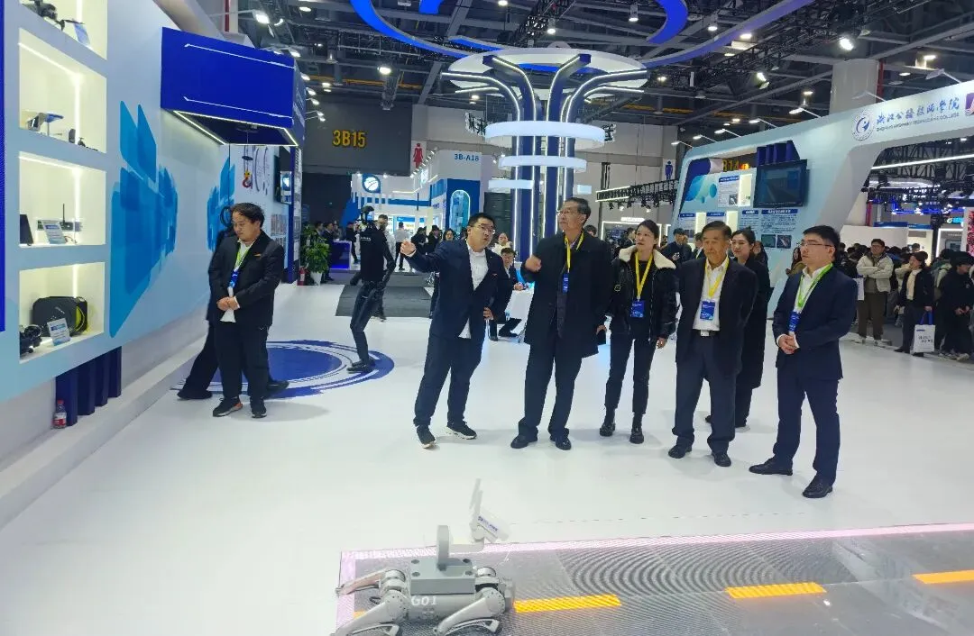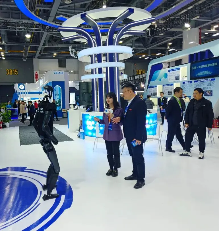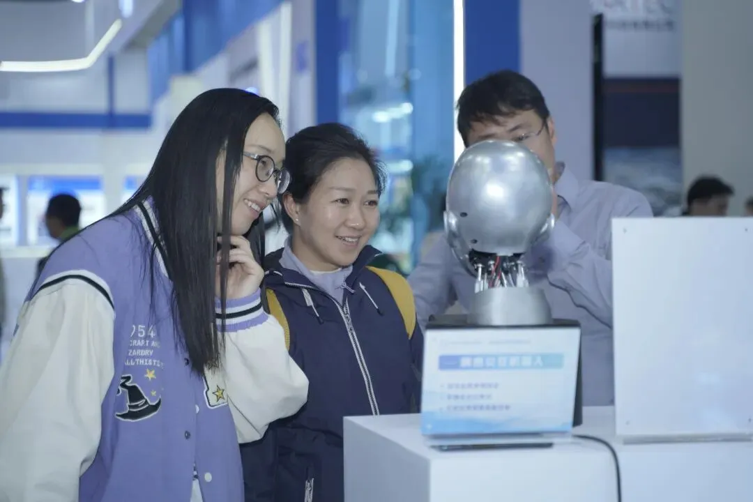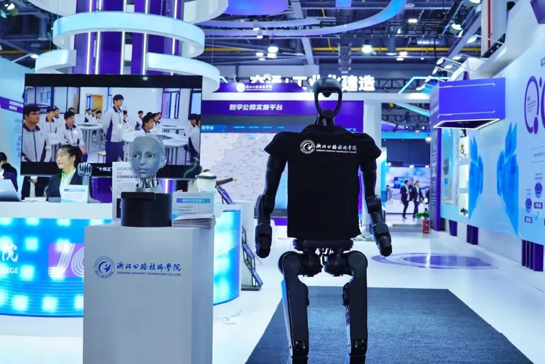 展会首日,学院与公司展区人气火热。人形机器人、情感交互服务机器人、智能仿生手、脑环等高科技装备,吸引了大量嘉宾和观众驻足参观和互动。他们表现出浓厚的兴趣,积极与讲解员沟通交流,详细了解各类产品的性能特点与应用场景。在现场试验路段,机器狗搭载轻量化巡检设备忙碌工作,参观者亲身体验智慧养护体验区的互动演示,通过大数据分析平台和现场大屏,近距离观察试验检测与病害数据实时生成的过程,深入了解了学院和交创公司在公路养护管理方面的最新成果。