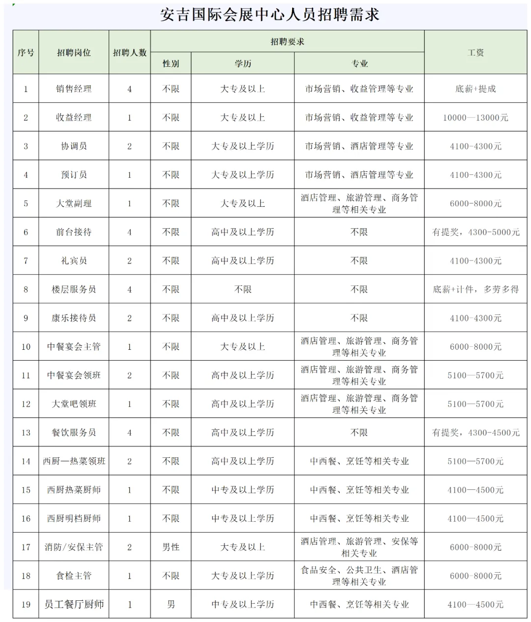 安吉国际会展中心因工作需要,决定面向社会公开招聘工作人员37名,现将有关招聘事项公告如下: