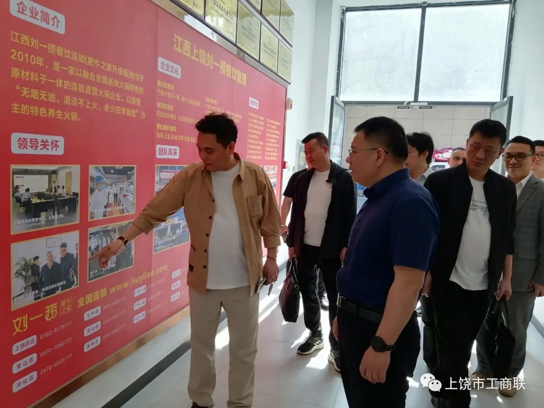会前,刘斌一行实地走访调研了江西上饶刘一捞餐饮管理有限公司,协会会长、公司董事长刘利军介绍了江西上饶刘一捞餐饮管理有限公司营销经营模式、发展布局、投资理念等方面情况。
