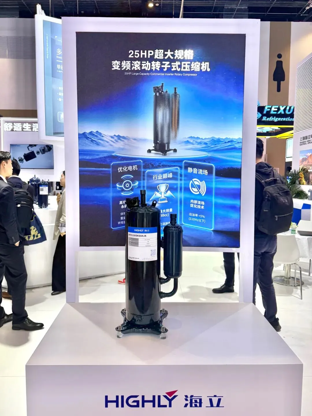2026中国制冷展:25HP超大规格变频转子压缩机重磅亮相
