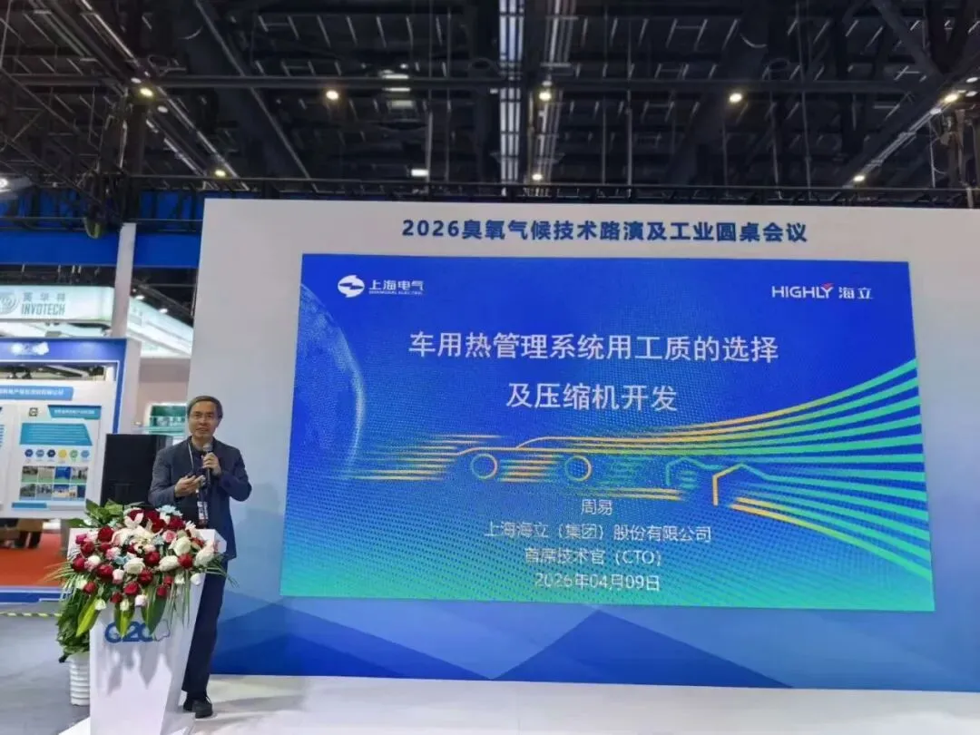 展会期间,海立集团首席技术官周易作为企业代表,受邀出席由中国制冷空调工业协会与生态环境部对外合作与交流中心联合主办的“工商制冷空调行业HCFCs淘汰区域指导中心建设座谈会暨淘汰改造项目实施研讨会”及2026臭氧气候技术路演与工业圆桌会议。会上,周易通过演讲充分展现了海立在前沿制冷及热管理领域深厚的技术积淀,先后分享了《车用热管理系统用工质的选择及压缩机开发》与《新能源汽车热管理系统及压缩机的技术开发》两场高水准技术课题,进一步彰显了海立作为行业领军企业在绿色低碳与新能源汽车热管理方向的技术引领与品牌影响力。