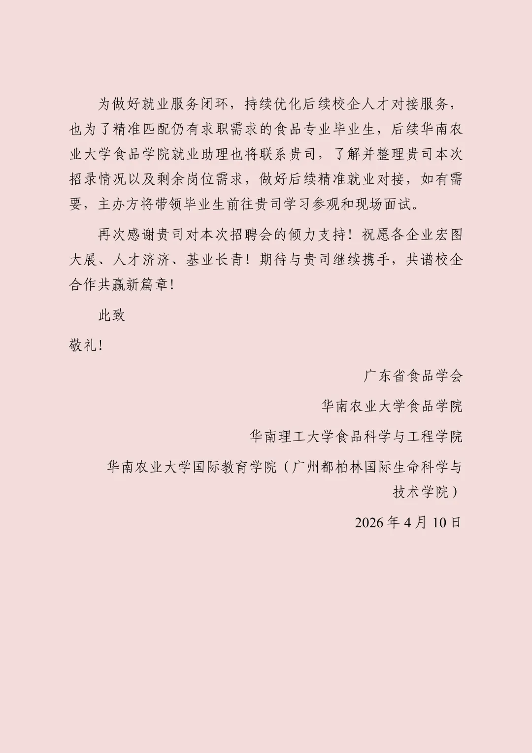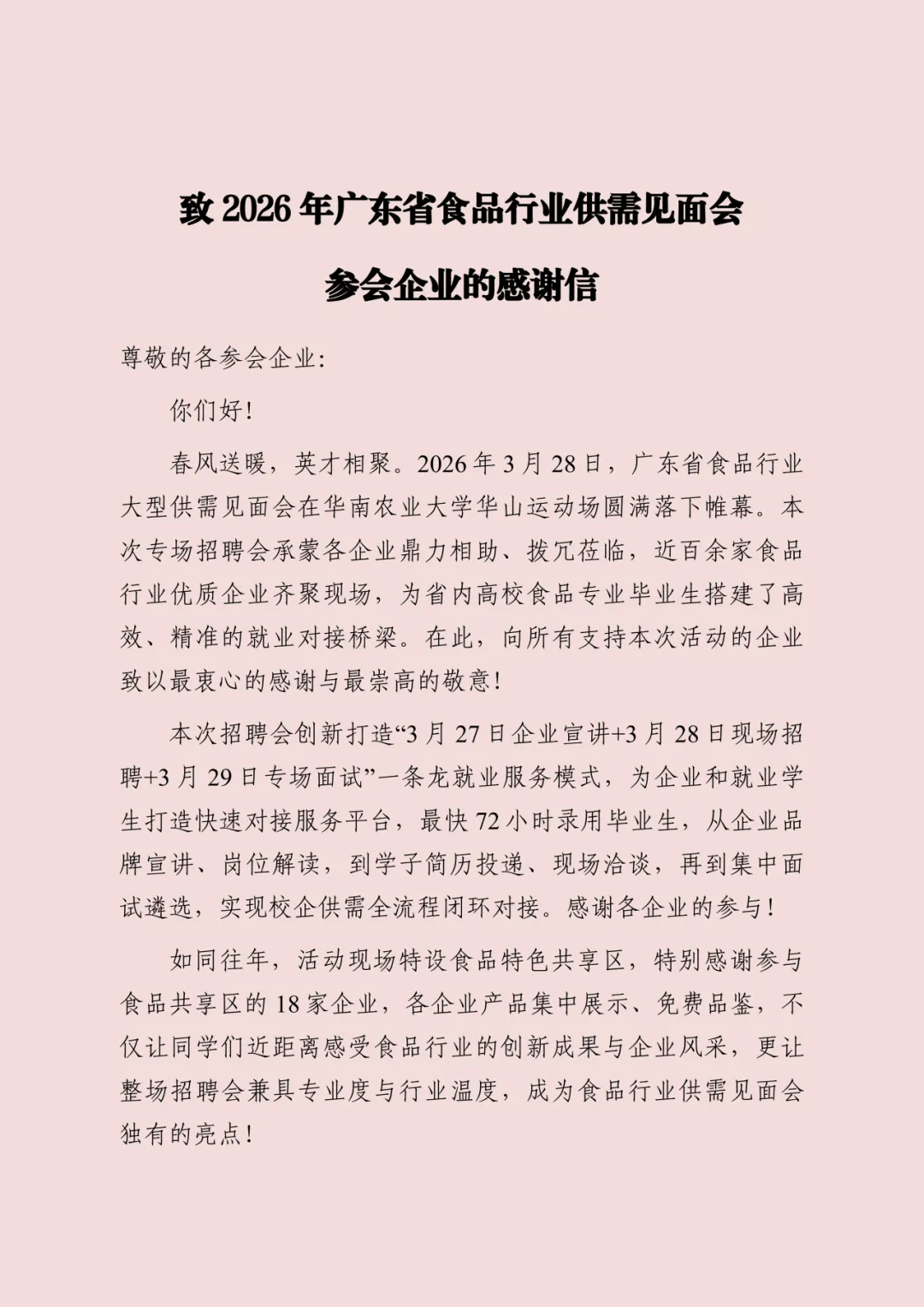 致2026年广东省食品行业供需见面会参会企业的感谢信