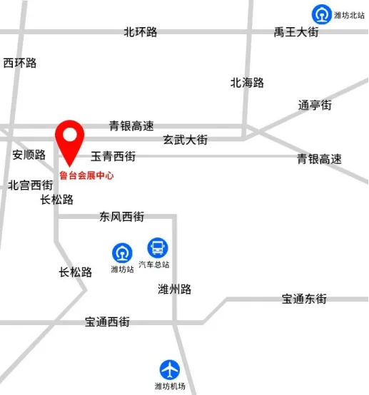 ①自驾:导航到潍坊鲁台会展中心,从场馆西南门、东北门进入。