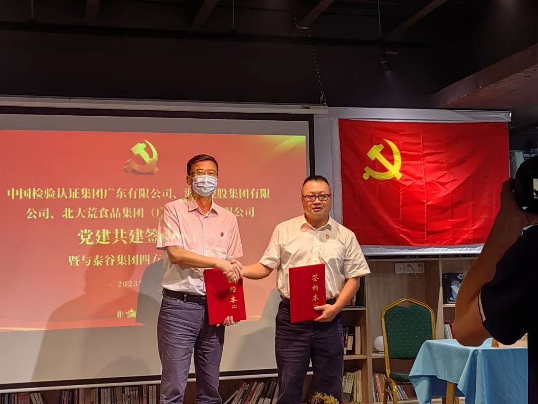 会上,中国中检华南区党委书记、总经理兼广东公司党委书记、总经理苏立明,海露控股集团有限公司党支部书记、总经理王冰星,北大荒食品集团(广州)食品有限公司党支部书记、总经理杨宏翔,分别介绍了各自单位的党建工作、组织架构以及业务架构等方面情况,共同签订了党建共建协议书,凝聚组织共建、资源共享的合力,进一步实现以高质量党建引领企业高质量发展。