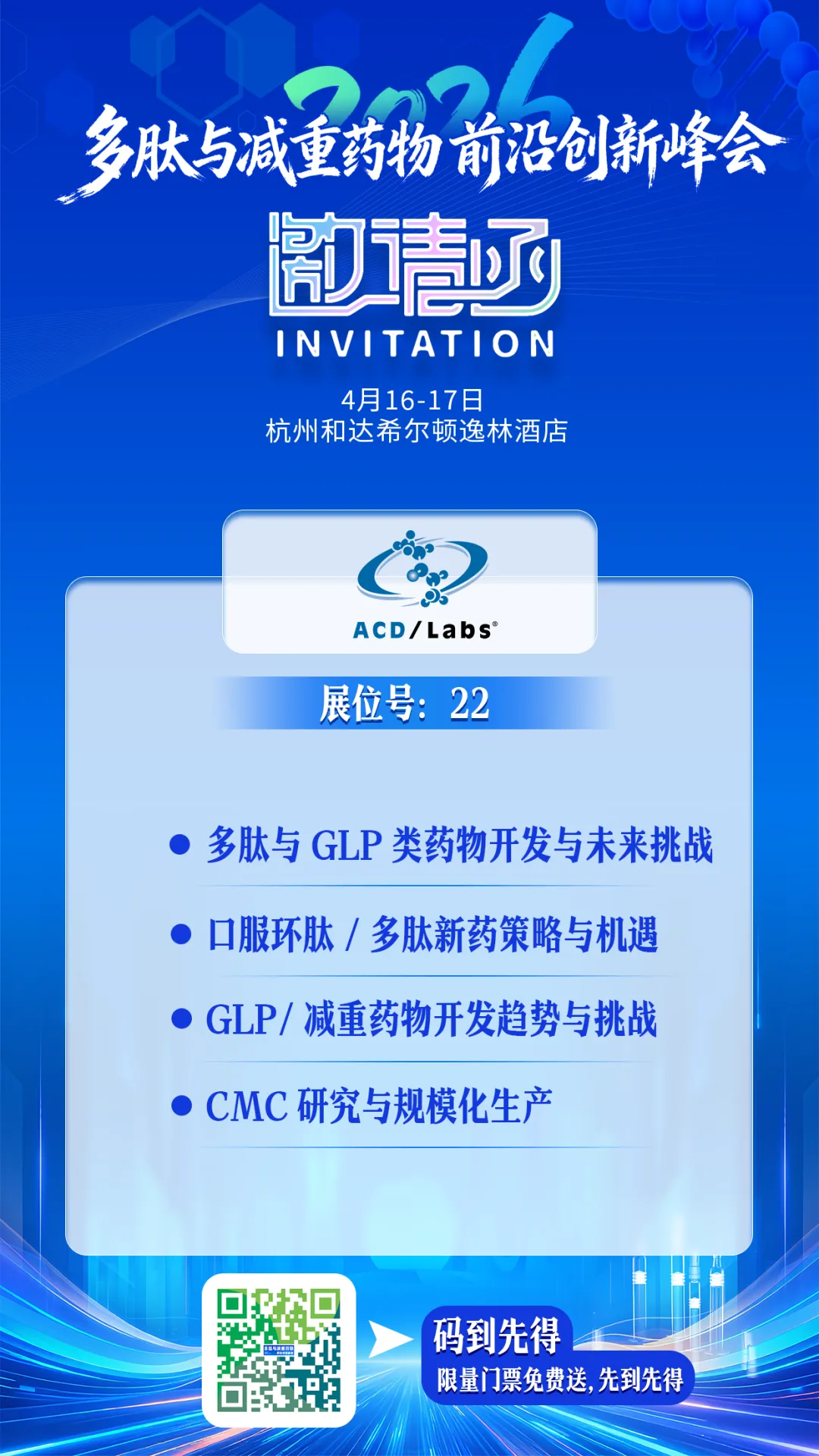 ACD/Labs将亮相22展台,集中展示我们在化学分析、分子结构与信息数字化融合领域的领先软件解决方案。诚邀您莅临交流,与探行业发展新趋势!