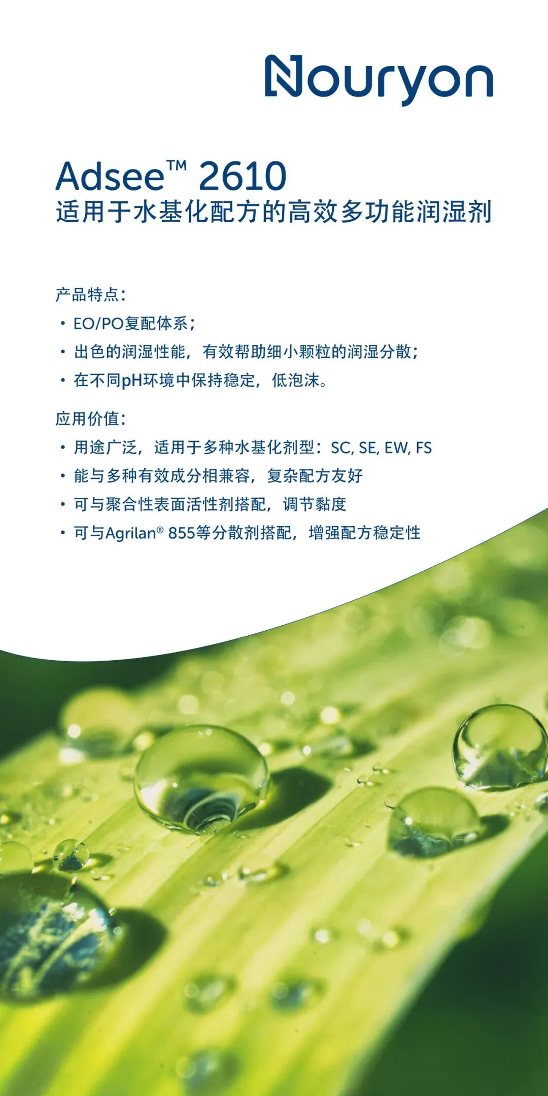 高效润湿,适配多种水基化剂型