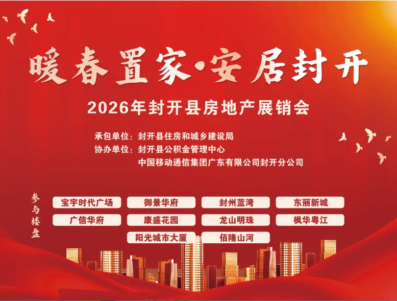 为进一步激活我县房地产市场活力,搭建房企与购房者高效对接平台,切实满足大家合理住房需求,让广大职工群众享受到便捷、优惠的购房服务。封开县住房和城乡建设局于2026年4月举办“暖春置家·安居封开”房地产展销会。