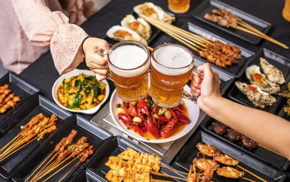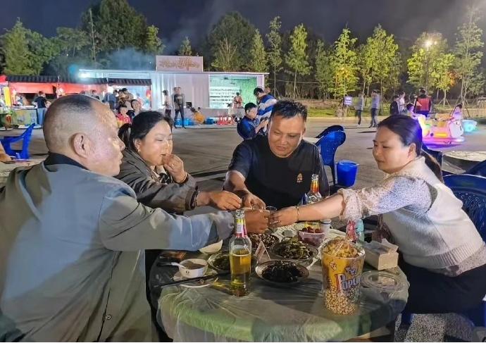 市民们吃着烧烤、喝着啤酒、赏着夜景,